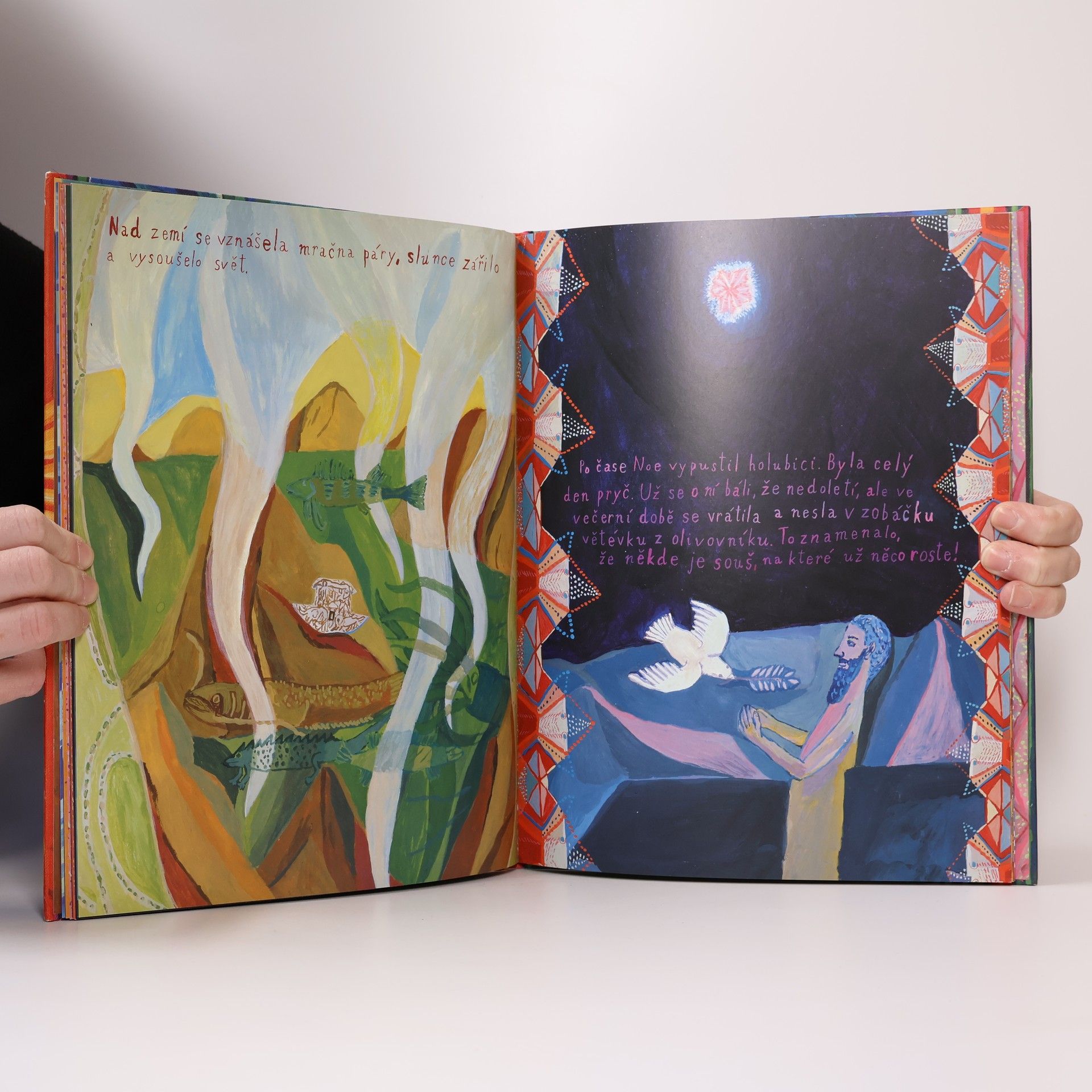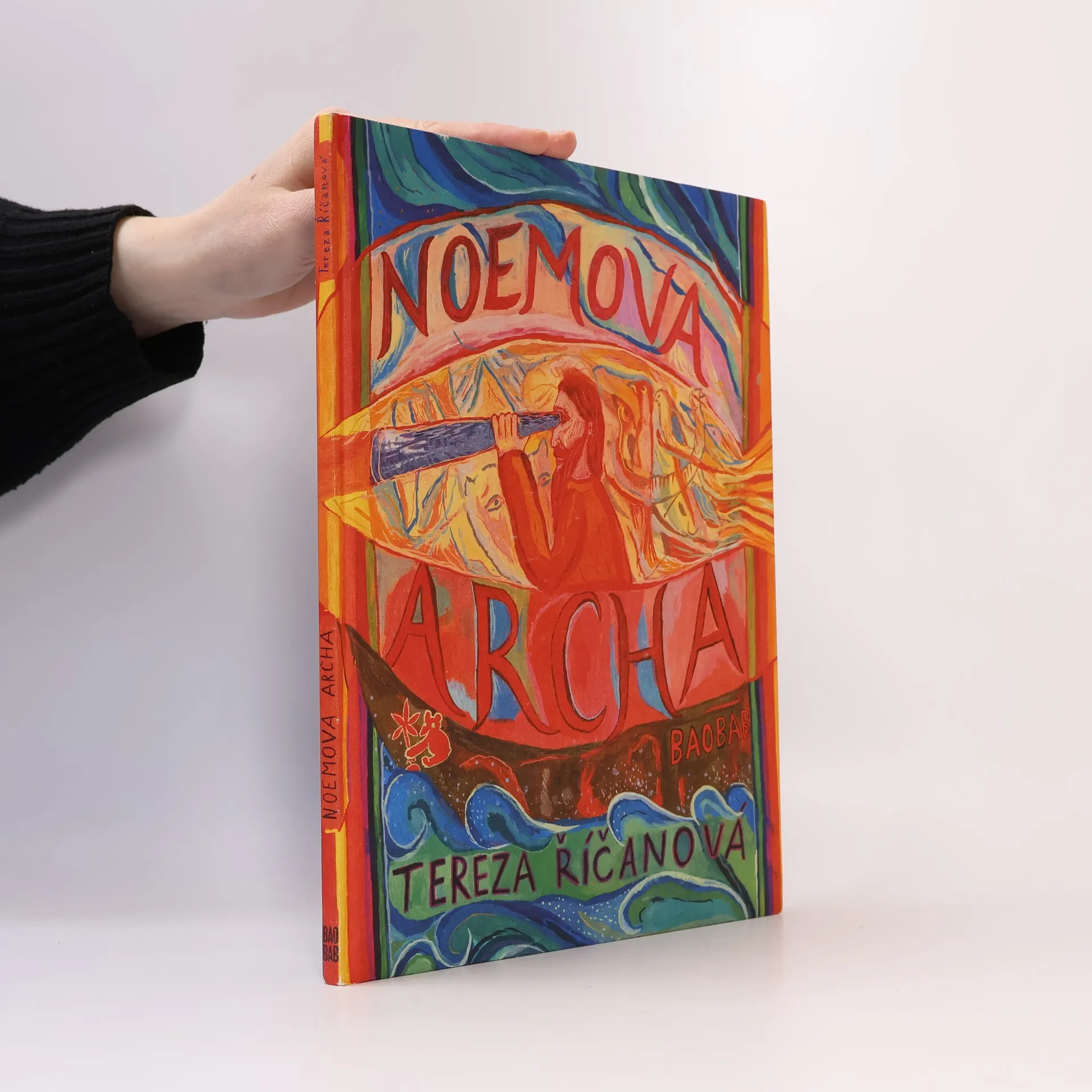 Obrazové album, které podle starodávného biblického příběhu a událostí na vlastním dvoře nakreslila Tereza Říčanová, nechává znovu ožít příběh o záchraně Noema a jeho rodiny. Ilustrace vyprávějí o časech před potopou, o andělu zvěstovateli, Noemově rodině, potopě, záchraně Archy a nové úmluvě mezi Bohem a lidmi. Autorka zvolila pro své vyprávění zcela osobní a jako vždy originální přístup. Ve velkém příběhu umí skvěle najít drobnosti, jež vyprávění dodávají autenticity a osobní síly. Například zvířata oslovuje k záchraně anděl, přičemž nezapomene ani na malé brouky v trávě, a lidé každému zvířeti jeho komůrku vysmolí, aby do ní nenatekla voda. Autorka navazuje na své předchozí autorské knihy vydané v nakladatelství Baobab: Kozí knížka, Vánoční knížka a zpěvník lidových písní Měsíček svítí. Nové obrazové album malířky a ilustrátorky Terezy Říčanové navíc prohlubuje kompozicí díla, neboť text se stal součástí ilustrací a podtrhuje archetyp vyprávění tohoto dávného příběhu. Ilustrace v knize Noemova archa přibližují dětem svět skutečného umění: autorka se nezalekne abstrakce ani velkých krajinných kompozic. A i v této knize stvrzuje svůj nezaměnitelný expresivní, svérázný a přímočarý způsob tvorby, který z dětského čtenáře činí plnoprávného partnera v dialogu mezi autorem a čtenářem.