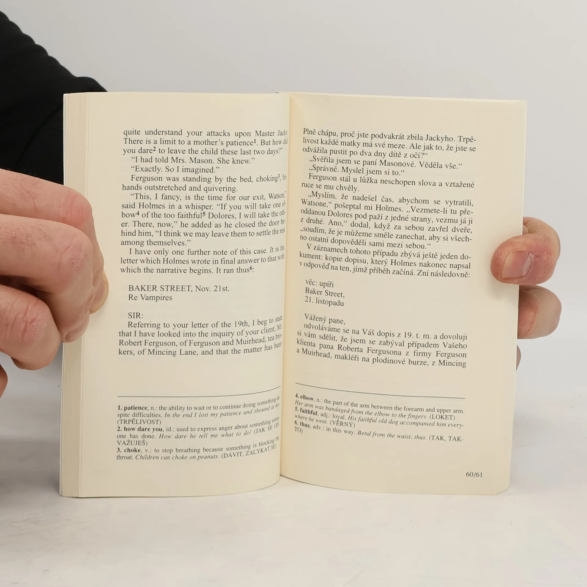 Dva slavné případy geniálního detektiva Sherlocka Holmese z pera Arthura Conana Doyla. Bilingvní česko-anglické vydání, nezkrácený text s komentářem