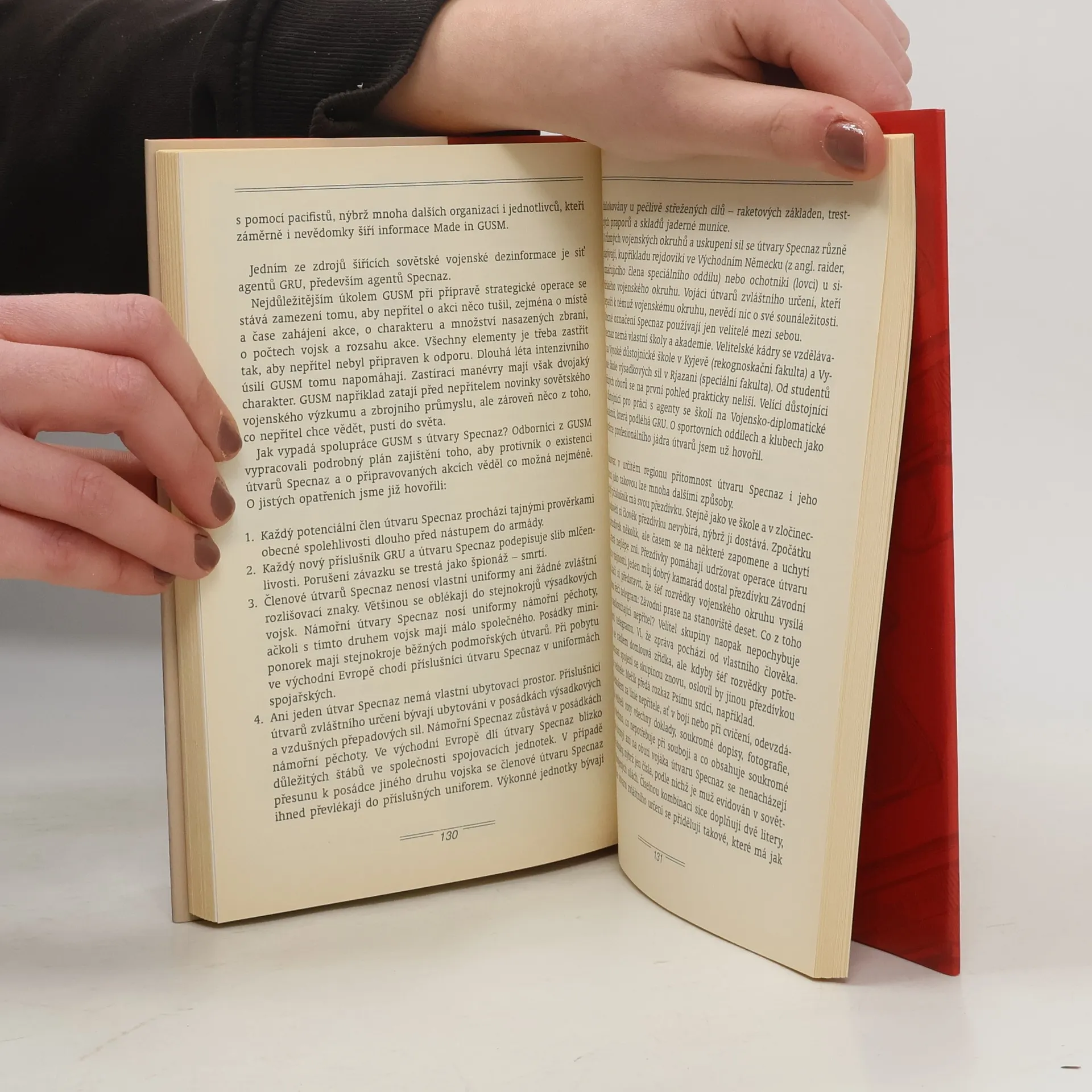 Kniha je autorovým svědectvím o špičkách sovětské armády, do nichž sám pronikl a aktivně v nich působil. Označení Specnaz je zkratka z termínu specialnoje naznačenije, tzn. zvláštní určení. Pojmenovává přepadové oddíly sovětské vojenské rozvědky (GRU), jejichž činnost v sobě spojuje prvky špionáže, terorismu a rozsáhlých partazánských akcí. V 15 kapitolách autor čtenáře seznámí s dějinami útvarů Specnaz, jejich složením a organizací, s činností cizinců i sovětských sportovců v těchto oddílech, s výzbrojí, technikou a s taktikou řízení operací, dále s výběrem, přípravou a výcvikem vojáků a s jejich účastí v 1. svět. válce. Suvorov vypráví též beletristickou formou příběhy konkrétních vojáků, což jsou nejzajímavější části knihy. Připojeny jsou fotografie a grafické přílohy. Dotisk r. 2000 (s novou obálkou)