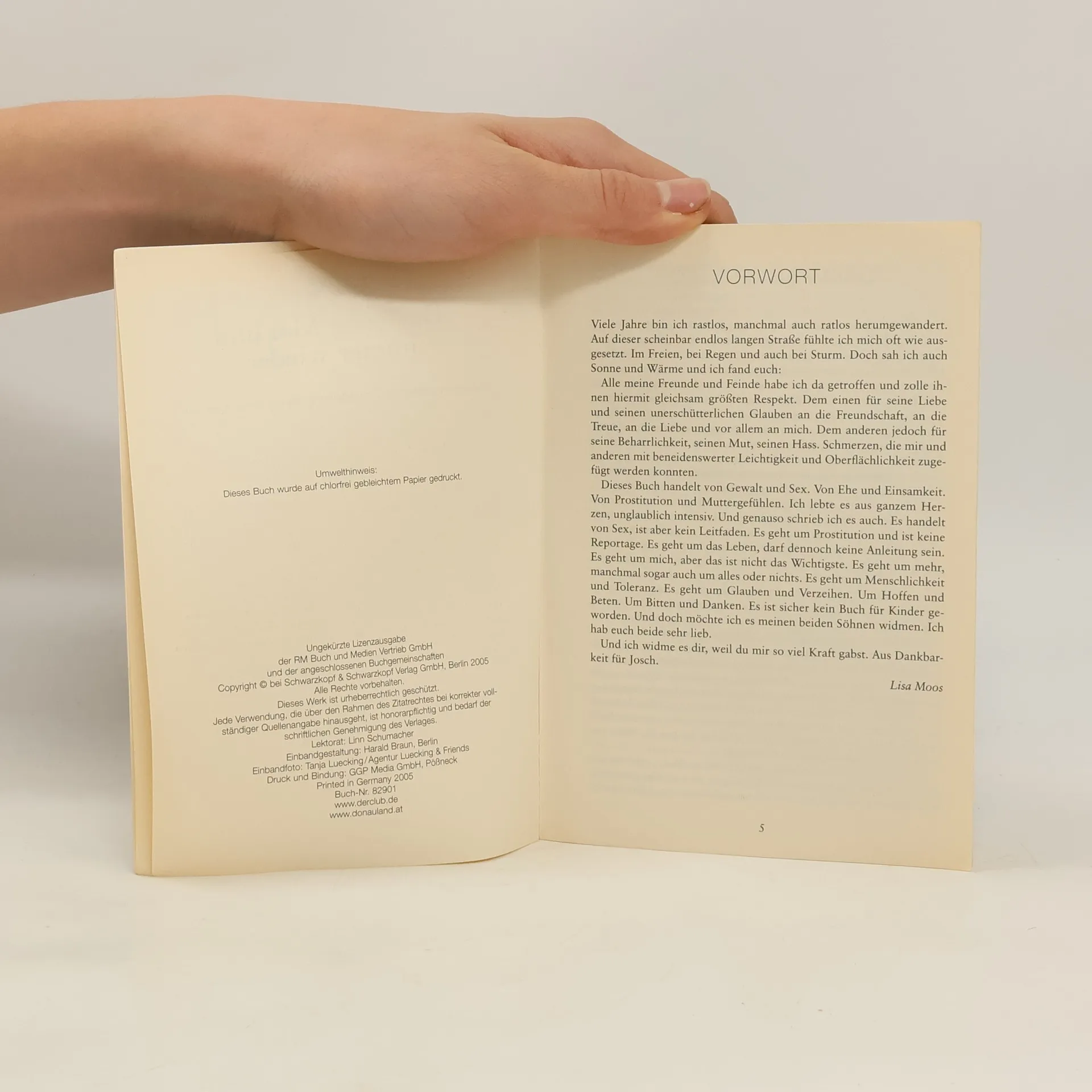 Lisa Moos arbeitete mehr als zwanzig Jahre als Hure. Das hat sie sich nicht ausgesucht – Not und enttäuschte Liebe haben sie auf diesen Weg gebracht. Bis heute hat Lisa Moos alle Spielarten der Leidenschaft erfahren: Perversion und Erniedrigung, aber auch Freundschaft und Liebe in einer Welt, die ihren eigenen Regeln und Gesetzen folgt. Das erste Mal und immer wieder beschreibt den Liebes- und Leidensweg einer Prostituierten. Detailliert und in klaren Worten erzählt Lisa Moos von ihrem Leben als Straßenhure und Edeldirne, von schönen und erschreckenden Erfahrungen aus dem Rotlichtmilieu und der Welt der käuflichen Liebe, aber auch von ihren Wünschen und Träumen und den Bemühungen, sich ein eigenes Leben aufzubauen…