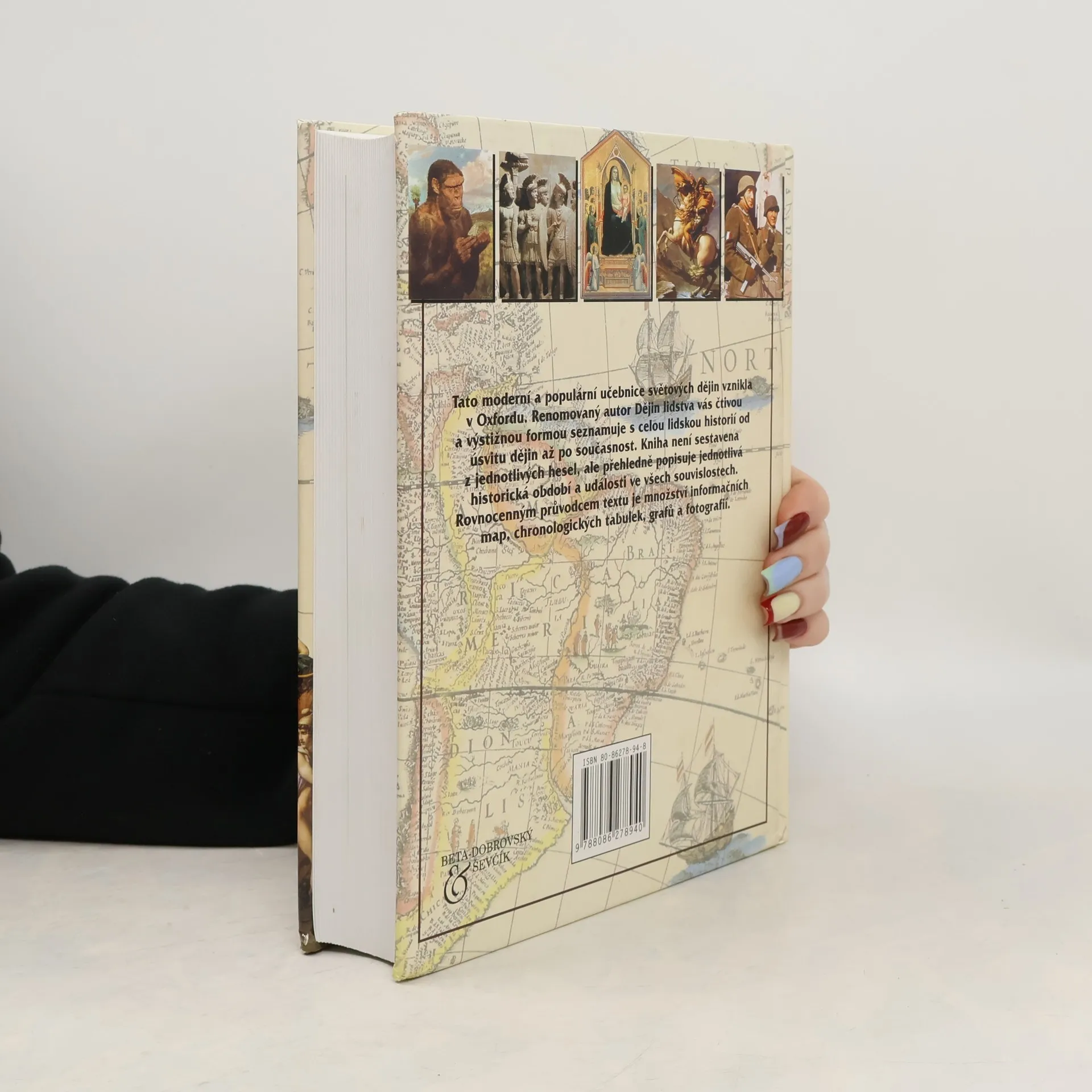 Kniha koncipovaná jako učebnice shrnuje vývoj světa od prehistorických počátků po rozpad sovětského bloku.