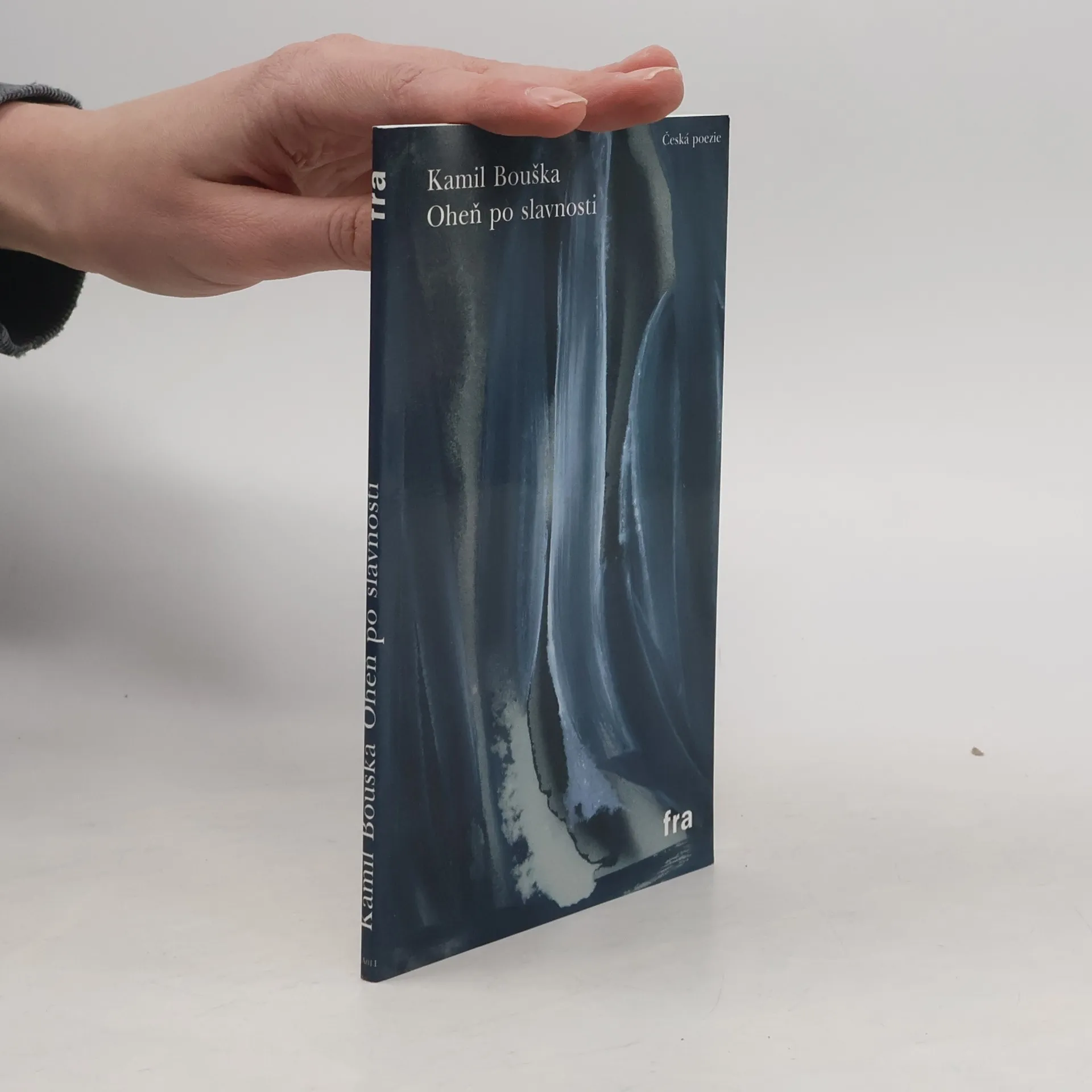 Debut mladého básníka Kamila Boušky (1979), člena skupiny Fantasía. Bouškovu poezii známe dosud jen fragmentárně. Ve sborníku skupiny Fantasía, jíž je členem, publikoval rozlehlejší básně, v nichž se nechával unášet proudem slov a imaginace. Otiskl také komornější verše, v nichž vyzkoušel svoje vlastní řešení bytového interiéru, tolik rozšířeného v české poezii posledních let. Naposledy se objevily ukázky z nového cyklu Rozemnutá země, jakési osobní variace mýtu o stvoření světa. – Vzhledem k energii, s níž promlouvá v různých variantách Bouškův osobitý hlas, i vzhledem k tomu, že některé z jeho básní zmíněnou bytovou poetiku pozoruhodně nabourávají a demontují, je pro mě vydání Bouškovy prvotiny Oheň po slavnosti záslužným a očekávaným počinem – Jonáš Hájek.