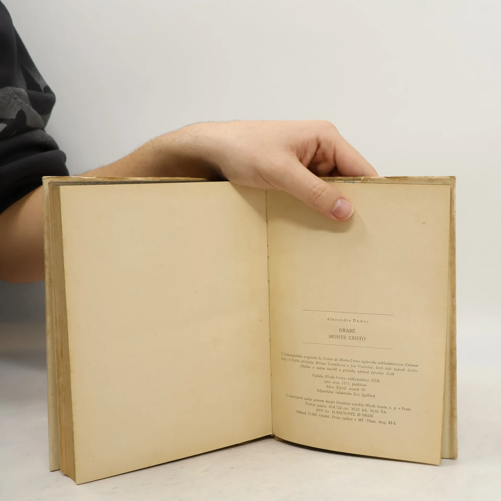 Edmond Dantès strávil ve vězení bez soudu dvacet let. Podaří se mu však uprchnout a po nálezu tajemného pokladu, o kterém mu řekl jeho bývalý spoluvězeň abbé Faria, se z něho stává boháč. Nechá si říkat Hrabě Monte-Christo a rozhodne se využít svého bohatství pro osobní mstu za spáchané křivdy. Nalezne své nepřátele ve velmi významných postaveních. Z Danglarse je bohatý bankéř, z Mondega (který se oženil s Mercedes) uznávaný generál hrabě de Morcerf a z Villeforta úspěšný prokurátor. Edmond Dantès je však postupně všechny zničí. Prvním na řadě je Danglars, kterého Dantès obratnou manipulací přivede k bankrotu. Pak se postará o zveřejnění Villefortova tajemství, kterým je odložení jeho nemanželského syna, z nějž vyrostl bezskrupulózní zloděj a vrah. Poslední zaplatí Mondego, když Dantès odhalí jeho hanebný zločin vojenské zrady a Fernand po odsouzení veřejností i vlastní rodinou spáchá sebevraždu. Dantès se smiluje jen nad Mondegovým synem Albertem, protože jej o jeho život přišla požádata sama Mercedes. Jejich láska je však již navždy ztracena a Dantès odplouvá začít nový život s mladou otrokyní Haydée. Souborné vydání Hrabě Monte Cristo, z technických důvodů vyšlo ve dvou svazcích. I. díl první až třetí. 664 s. -- II. díl čtvrtý až šestý. 633 s.