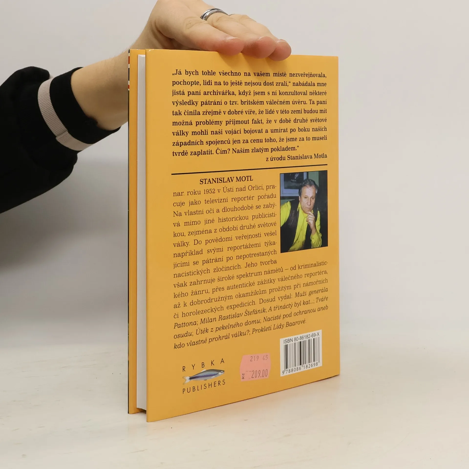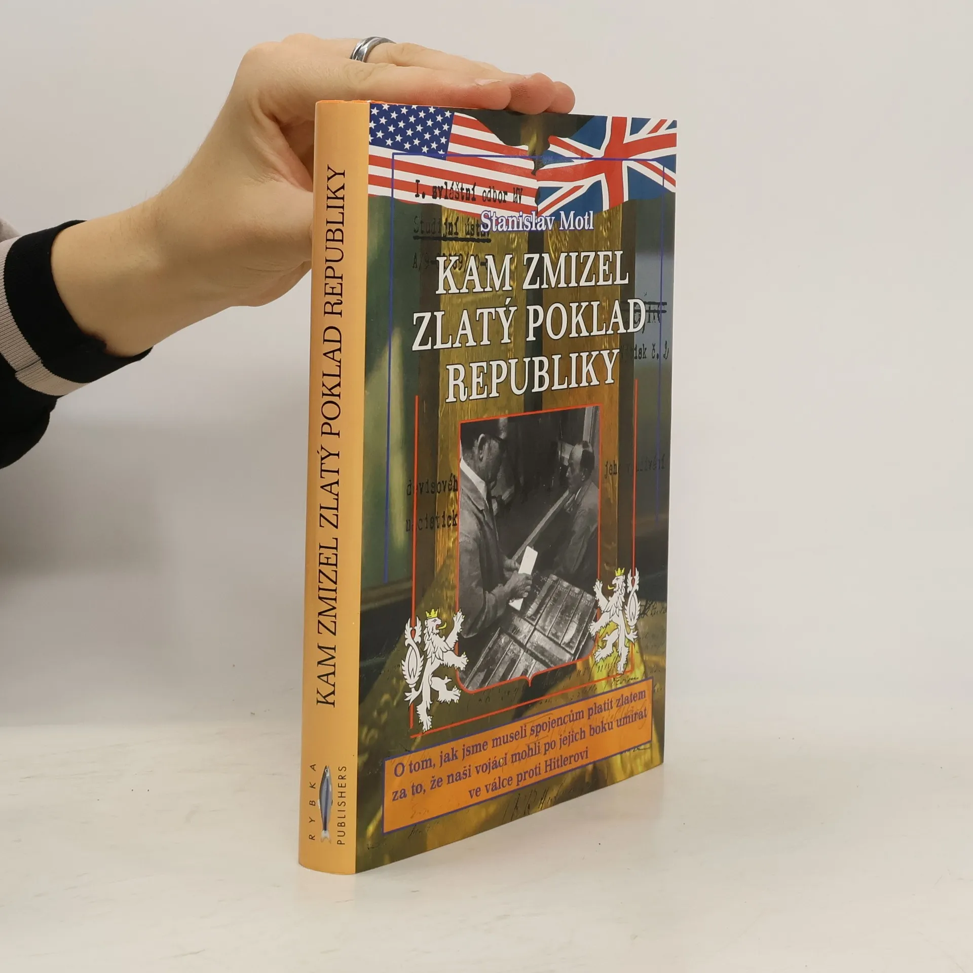 O tom, jak jsme museli spojencům platit zlatem za to, že naši vojáci mohli po jejich boku umírat ve válce proti Hitlerovi. Kniha Stanislava Motla, jejíž součástí je bohatý obrazový materiál, včetně desítek autentických dokumentů, formou dynamické reportáže popisuje dramatické pátrání po osudech zlatého československého pokladu v nejrůznějších archivech u nás i v zahraničí. Popisuje také mnohá zajímavá setkání s pamětníky a zveřejňuje utajované zápisy z vleklých a dramatických jednání o navrácení československého měnového zlata, jež bylo podmíněno tím, že Československo zaplatí USA a Velké Británii "daň za osvobození", do níž spadaly mimo jiné uniformy a výzbroj nejenom živých, ale i padlých vojáků, včetně bomb, které naši letci shodili na Německo.