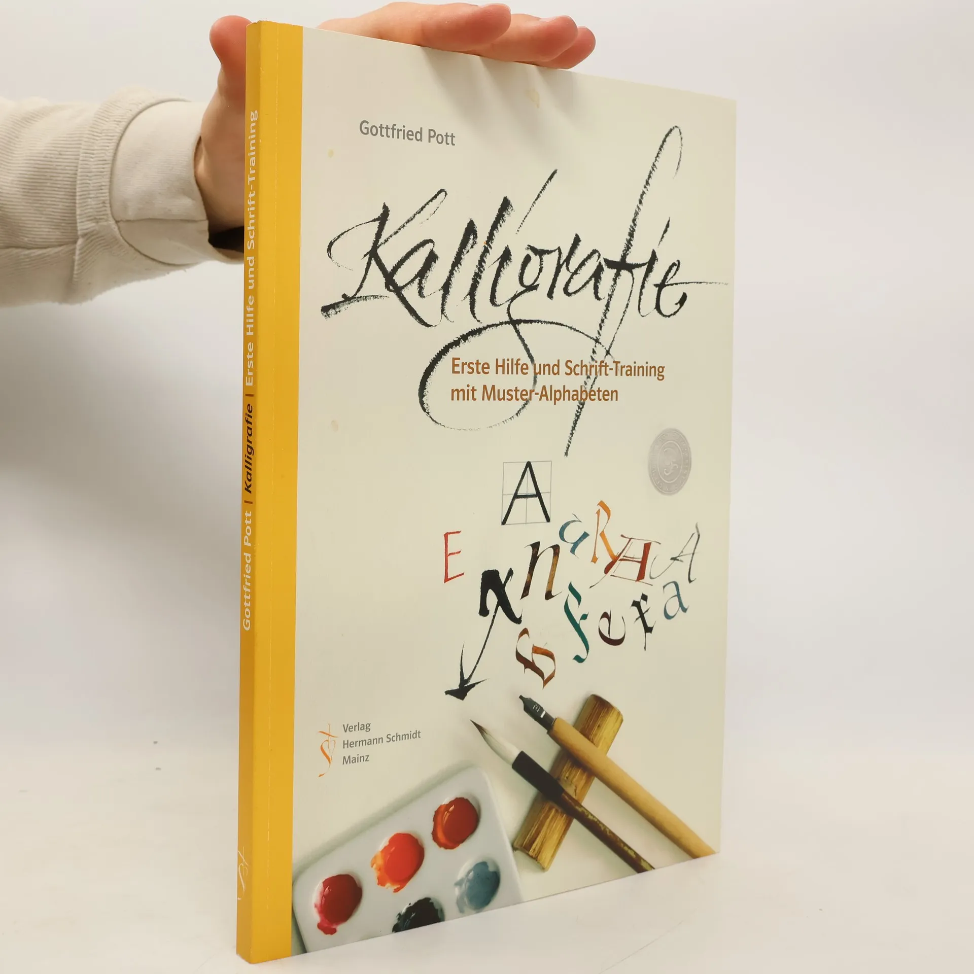 Bei richtiger Anleitung ist es leichter als man denkt, mit Feder und Tusche kalligrafische Meisterwerke zu zaubern. In Kalligrafie – Erste Hilfe und Schrift-Training nimmt Gottfried Pott Sie mit auf den Weg: vom Vergessen der Angst vor dem Unperfekten über die Erfahrung mit den richtigen Werkzeugen zu Fingerübungen und den wichtigsten Schriften. Er schult das Gefühl für Proportion, Rhythmus, individuellen Strich und kontrollierte Spontaneität und begeistert für die eigene Schrift. Der Ruf nach dem Folgeband Kalligrafie – Intensiv-Training wurde schneller laut, als wir das zu hoffen gewagt hatten. Im 'Fortgeschrittenenkurs' gibt Pott Hintergrundinformationen zum Kulturgut Schrift. Er führt in weitere Schriftarten ein, so zum Beispiel in die perfekten Proportionen der Capitalis Monumentalis, zeigt Antiqua-Variationen und englische Schreibschriften, lädt zu dreidimensionalen und geprägten Schriften ein. Natürlich 'versüßt' er das Training wieder mit eindrucksvollen eignen Arbeiten und anregenden Muster- Alphabeten.
