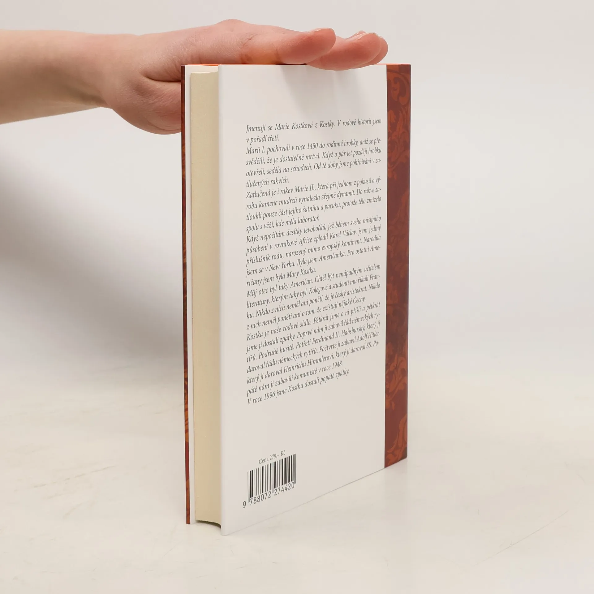 Již v pátém dílu ze série mimořádně úspěšných humoristických románů o "poslední aristokratce" mimo jiné dojde k následujícím událostem: Marie Kostková se rozzuří na Maxe Launa, zorganizuje výpravu do Nizozemského království, dostane briliantové šperky nesmírné hodnoty, objeví v sobě vášeň pro nakupování, v doprovodu své matky a paní Tiché odletí do Haagu, kde se setká s královnou Beatrix, omylem navštíví obchod s marihuanou, zažije oslnivý úspěch na recepci v královském paláci a potká sympatického mladého muže. Paní Tichá poprvé poletí letadlem a Jejímu Veličenstvu Beatrix se při audienci představí jako "nějaká Tichá." ViVien hraběnka Kostková zastaví přísun Prozacu a dočká se ocenění jako dvojnice princezny Diany. Zámecký zahradník překoná úzkost ze smrti a začne toužit po lásce. Kastelán Josef zůstane stejný.