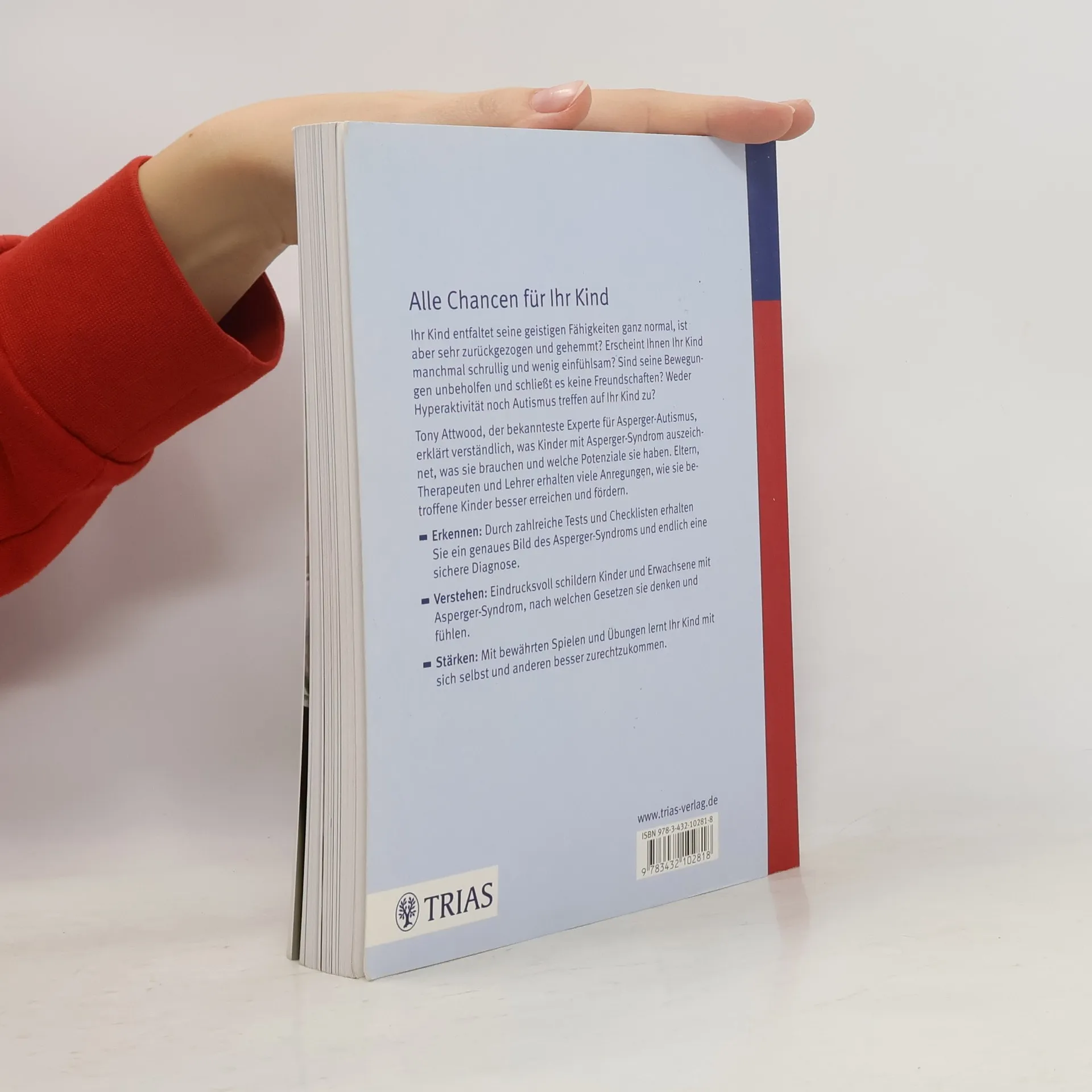 Alle Chancen für Ihr Kind. Ihr Kind entfaltet seine geistigen Fähigkeiten ganz normal, ist aber sehr zurückgezogen und gehemmt? Erscheint Ihnen Ihr Kind manchmal schrullig und wenig einfühlsam? Sind seine Bewegungen unbeholfen und schließt es keine Freundschaften? Weder Hyperaktivität noch Autismus treffen auf Ihr Kind zu? Tony Attwood, der bekannteste Experte für Asperger-Autismus, erklärt verständlich, was Kinder mit Asperger-Syndrom auszeichnet, was sie brauchen und welche Potentiale sie haben. Eltern, Therapeuten und Lehrer erhalten viele Anregungen, wie sie betroffene Kinder besser erreichen und fördern. Erkennen: Durch zahlreiche Tests und Checklisten erhalten Sie ein genaues Bild des Asperger-Syndroms und endlich eine sichere Diagnose. Verstehen: Eindrucksvoll schildern Kinder und Erwachsene mit Asperger-Syndrom, nach welchen Gesetzen sie denken und fühlen. Stärken: Mit bewährten Spielen und Übungen lernt Ihr Kind mit sich selbst und anderen besser zurechtzukommen.