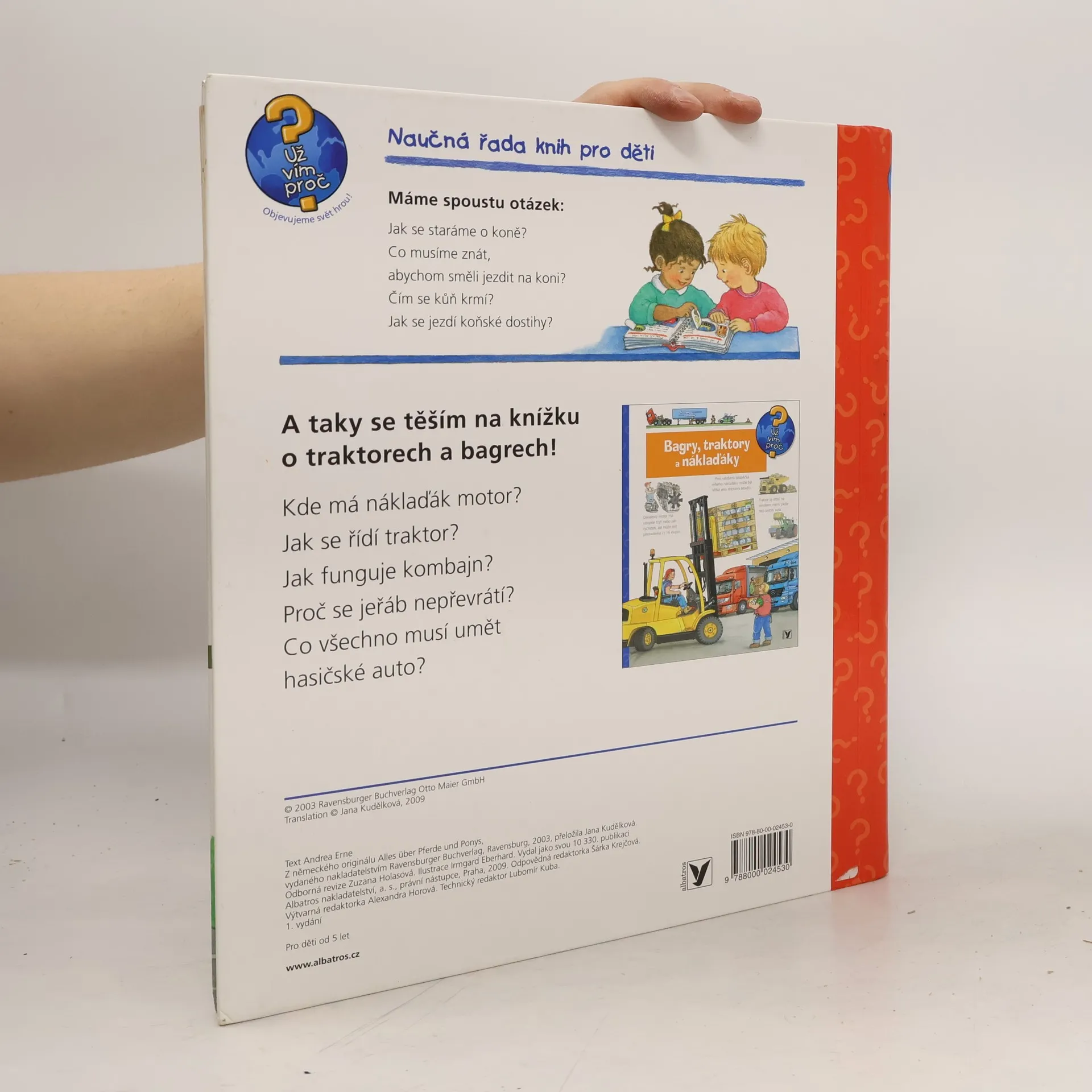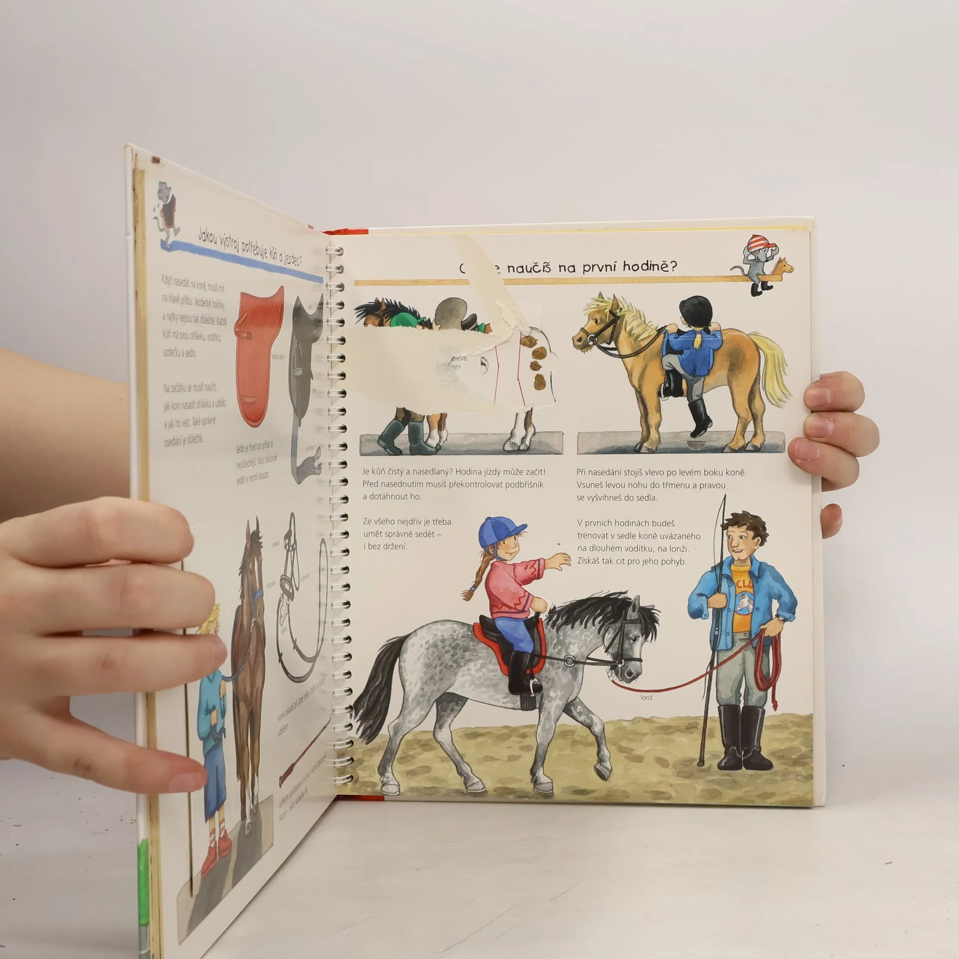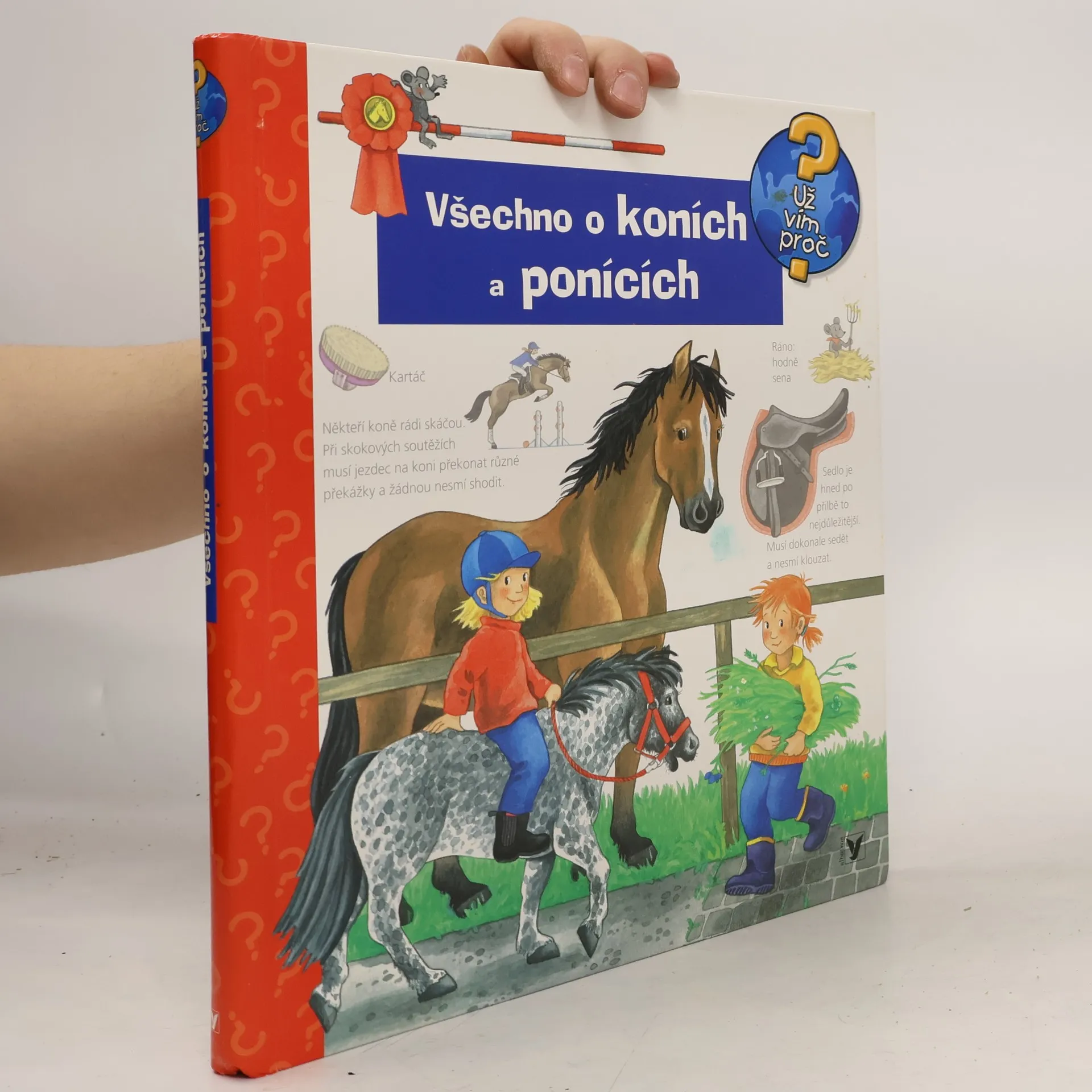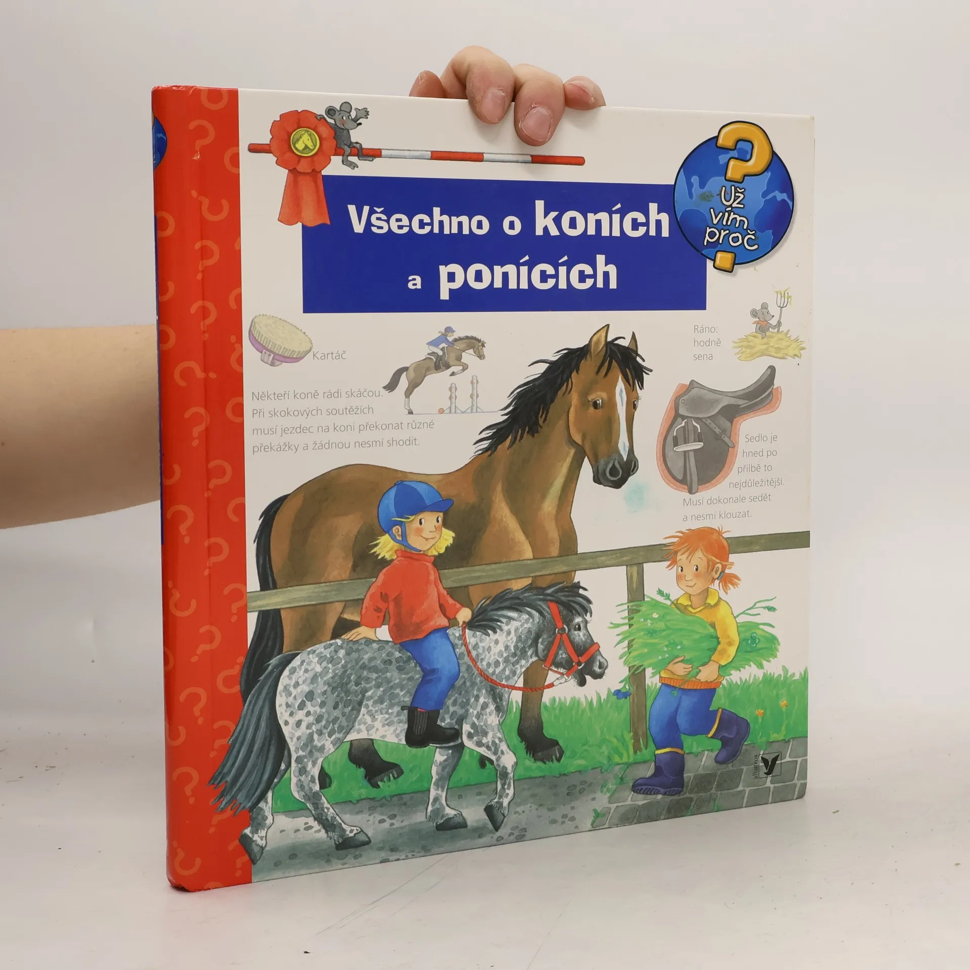 Na několika stránkách mnoho informací podaných slovy, a především obrázky! Dítě se dostane na jízdárnu i do přírody, naučí se pojmenovat každou část koňského těla a rozeznat druhy koní, dozví se, co mají koně rádi, kdy se cítí dobře a jak to poznáme. Najde tu i celou řadu zajímavostí. Zkrátka vše o koních a ponících v důsledném propojení textu s ilustracemi.