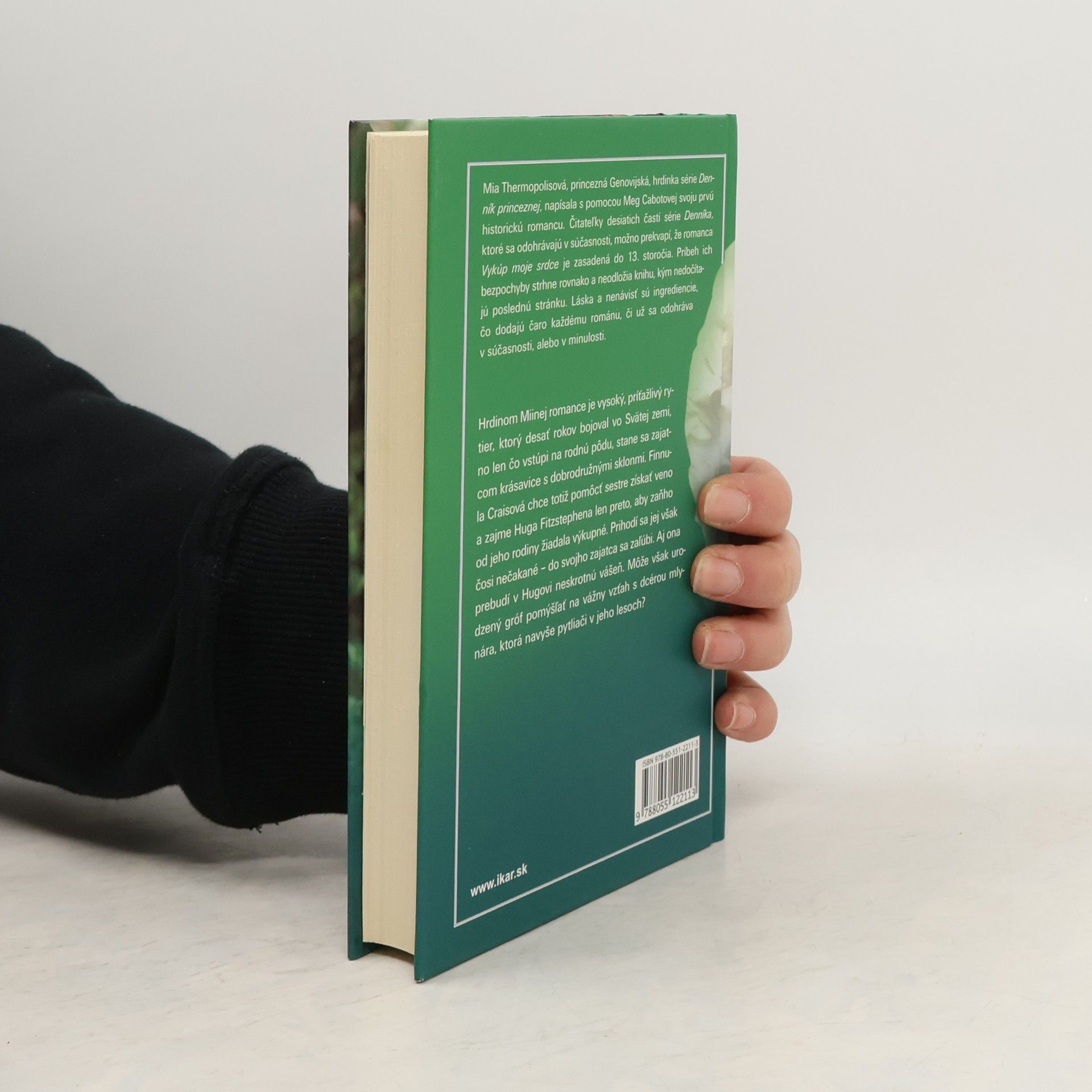 Mia Thermopolisová, princezná Genovijská, hrdinka série Denník princeznej, napísala s pomocou Meg Cabotovej svoju prvú historickú romancu. Čitateľky desiatich častí série Denníka, ktoré sa odohrávajú v súčasnosti, možno prekvapí, že romanca Vykúp moje srdce je zasadená do 13. storočia. Príbeh ich bezpochyby strhne rovnako a neodložia knihu, kým nedočítajú poslednú stránku. Láska a nenávisť sú ingrediencie, čo dodajú čaro každému románu, či už sa odohráva v súčasnosti, alebo v minulosti. Hrdinom Miinej romance je vysoký, príťažlivý rytier, ktorý desať rokov bojoval vo Svätej zemi, no len čo vstúpi na rodnú pôdu, stane sa zajatcom krásavice s dobrodružnými sklonmi. Finnula Craisová chce totiž pomôcť sestre získať veno a zajme Huga Fitzstephena len preto, aby zaňho od jeho rodiny žiadala výkupné. Prihodí sa jej však čosi nečakané – do svojho zajatca sa zaľúbi. Aj ona prebudí v Hugovi neskrotnú vášeň. Môže však urodzený gróf pomýšľať na vážny vzťah s dcérou mlynára, ktorá navyše pytliači v jeho lesoch?