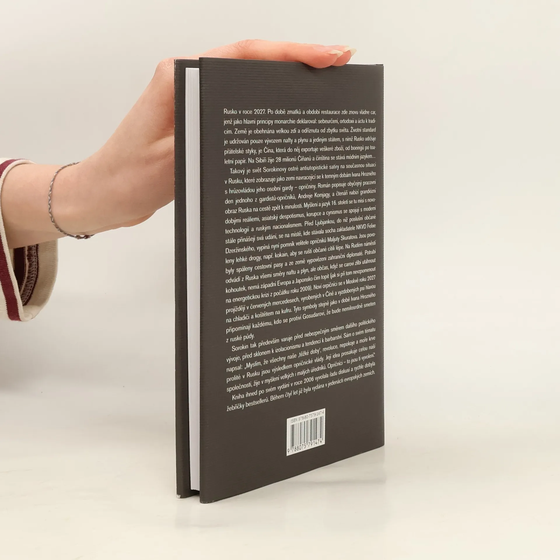 Kniha ihned po svém vydání vyvolala řadu diskusí a rychle dobyla žebříčky bestsellerů. Během čtyř let již byla vydána v jedenácti evropských zemích. Rusko v roce 2027. Po době zmatků a období restaurace zde znovu vládne car. Země je obehnána Velkou zdí a odříznuta od zbytku světa. Životní standard je udržován pouze vývozem nafty a plynu a jediným státem, s nímž Rusko udržuje přátelské styky, je Čína, která do něj exportuje veškeré zboží, od Boeingů po toaletní papír. Na Sibiři žije 28 miliónů Číňanů a čínština se stává módním jazykem… Takový je svět Sorokinovy ostré antiutopistické satiry, které zobrazuje jako zemi navracející se k temným dobám Ivana Hrozného s hrůzovládou jeho osobní gardy – opričniny. Román nabízí grandiosní obraz Ruska na cestě zpět k minulosti. Myšlení a jazyk 16. století se tu mísí s novodobými reáliemi, asiatský despotismus, korupce a cynismus se spojují s moderní technologií a ruským nacionalismem. Noví orpičnici se tu projíždějí v červených mercedesech, vyzdobených psí hlavou na chladiči a koštětem na kufru. Tyto symboly stejně jako v době Ivana Hrozného hrozí každému, kdo se protiví carově moci, že bude nemilosrdně smeten z ruské půdy. Sorokin tak především varuje před nebezpečným směrem dalšího politického vývoje, před sklonem k isolacionismu a tendencí k barbarství, která se mu zdá být částí ruské metafyziky.