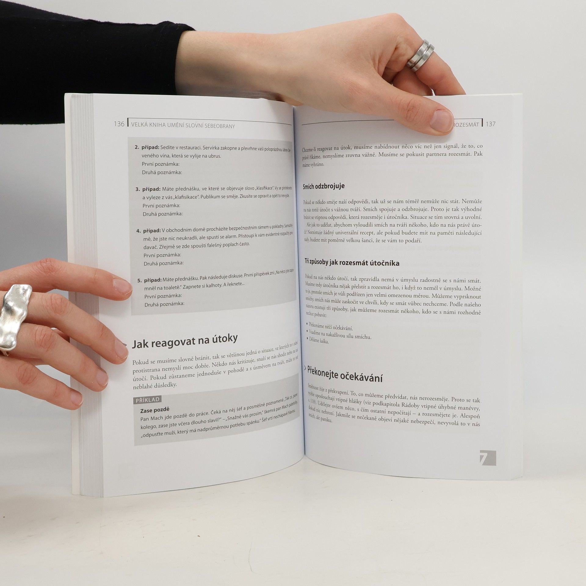 Kdo je pohotový a ovládá umění slovní sebeobrany, odchází ze slovních šarvátek a potyček jako vítěz a s jistotou zvládá i obtížnou komunikaci. Pojďte se naučit, jak se v náročných situacích blýsknout přesně zacílenou odpovědí. Dozvíte se, jak si ubránit svou suverenitu ve styku s lidmi, kteří se k vám nechovají s respektem, jak odrazit dotěrné či neférové otázky, jak zvolit správná slova či které techniky je možné natrénovat, aby vaše reakce pak byly co nejtrefnější. Na mnoha příkladech uvidíte a v cvičeních si natrénujete, jak využívat také řeč těla, jak odvrátit nepřiměřenou kritiku, jak být pohotový před publikem či co dělat, když druhý vybuchuje vztekem. Ať už v osobním životě či v práci: ten, kdo se umí suverénně vypořádat s neoprávněnými útoky, má více času a energie pro opravdu důležité věci.