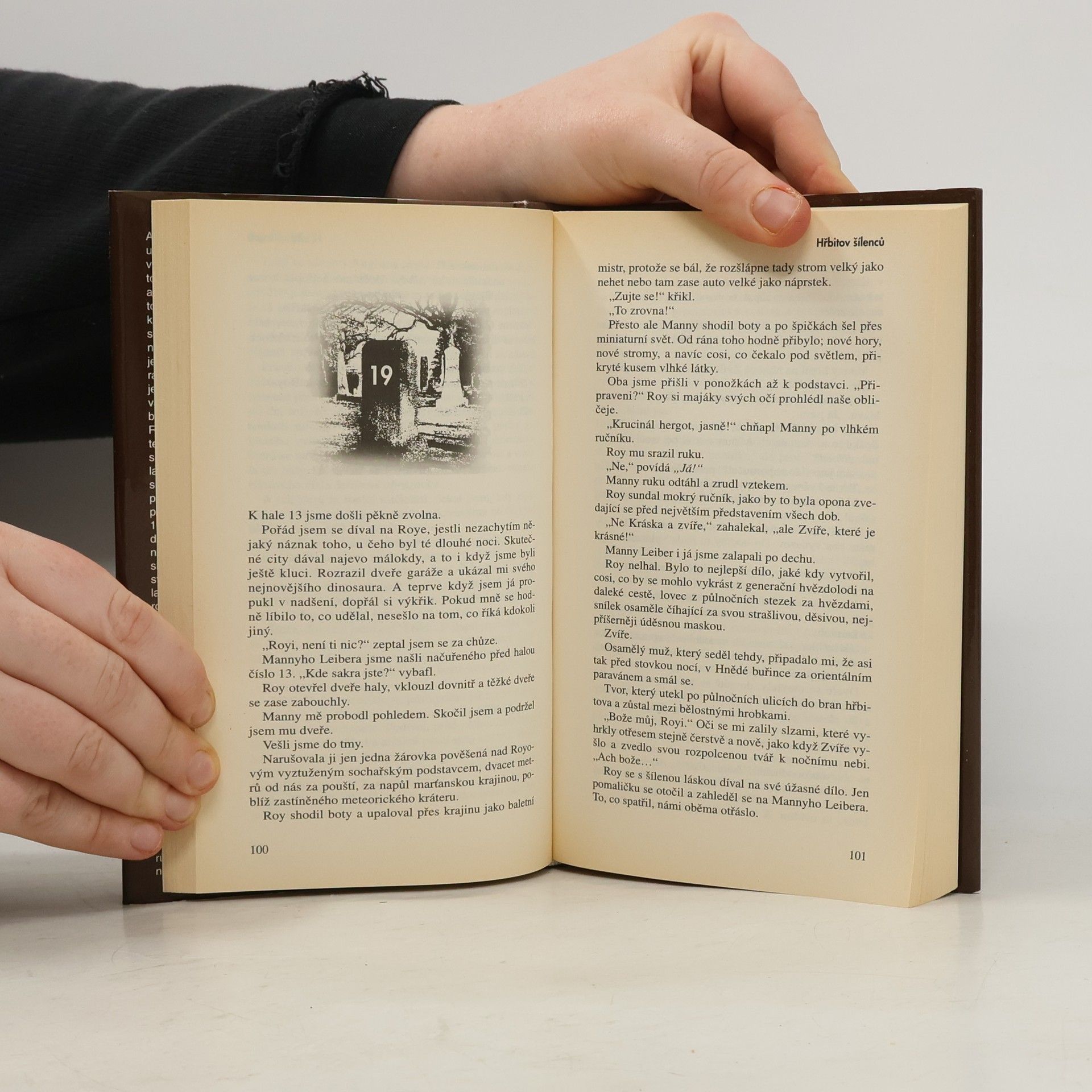 Mladý scénárista a nadějný povídkář, v němž poznáváme samotného autora, je najat obřími studii Maximus Films, aby společně se svým přítelem, výtvarníkem, který je posedlý vytvářením filmových maket oblud a dinosaurů, vymyslel nový horor, tak děsivý, jak nebyl ještě žádný předtím. Oba přátelé se s chutí pustí do práce, ale brzy se úděsné věci začnou dít ve skutečnosti. Při práci scénáristy se Ray Bradbury důvěrně seznámil s leskem i odvrácenou tváří studiového systému amerického, zvláště pak hollywoodského filmu padesátých let. A právě tento svérázný svět popisuje ve své fantaskní detektivce Hřbitov šílenců, která vznikla v roce 1990. Bradburyho známe jako autora, který se významně zasloužil o to, aby byl pobořen předsudek o takzvaných triviálních žánrech (sci-fi, fantasy, horor) jako o čemsi principiálně podřadném. Stejně jako v mnoha jiných svých dílech proniká hlavně citlivými zákoutími lidského srdce, která odhaluje tak, abychom spatřili, co nám doposud zůstávalo skryto. Jeho díla je radost číst, neboť jsou plná vtipu, elegance a hlubokého porozumění člověku. Znovu a znovu dokazuje nejen svou nenapodobitelnou schopnost objevovat nepoznané, ale také dokonalou znalost lidského nitra, ochotu vnímat skryté sny a touhy, ale také odvahu postihnout slabiny i černé stránky našich povah.