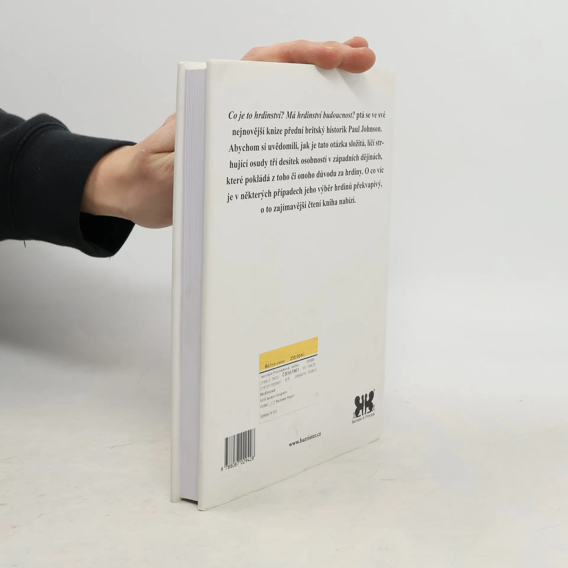 Co je to hrdinství? Má hrdinství budoucnost? ptá se ve své nejnovější knize přední britský historik Paul Johnson. Abychom si uvědomili, jak je tato otázka složitá, líčí strhující osudy tří desítek osobností v západních dějinách, které pokládá z toho či onoho důvodu za hrdiny. O co víc je v některých případech jeho výběr hrdinů překvapivý, o to zajímavější čtení kniha nabízí. Paul Johnson (1928) je přední britský historik a autor mnoha knižních bestsellerů, například populárních Dějin 20. století, Dějin křesťanství, Dějin židovského národa, Dějin civilizací Svaté země, Dějin anglického národa či Zrození moderní doby. Ve své nejnovější knize Hrdinové zhodnocuje zkušenosti z těchto předchozích titulů a pokouší se napříč dějinami nalézt odpověď na otázku, co je vlastně hrdinství. Předkládá čtenáři osudy tří desítek hrdinů a hrdinek, kteří stále vyvolávají úžas, obdiv a úctu, nebo v některých případech alespoň sympatie. Některá jména jsou jednoznačná, u některých čtenář pocítí rozpaky. Johnsonův výběr je subjektivní a podobně jako v předchozí knize Tvůrci (Barrister & Principal, 2007) se k tématu snaží přistupovat spíše přes jednotlivé osudy než přes analýzy a definice. Nesnaží se klást důraz na pohlaví či povolání, ale naopak poukázat na to, že statečné chování najdeme ve všech dobách a na různých místech.