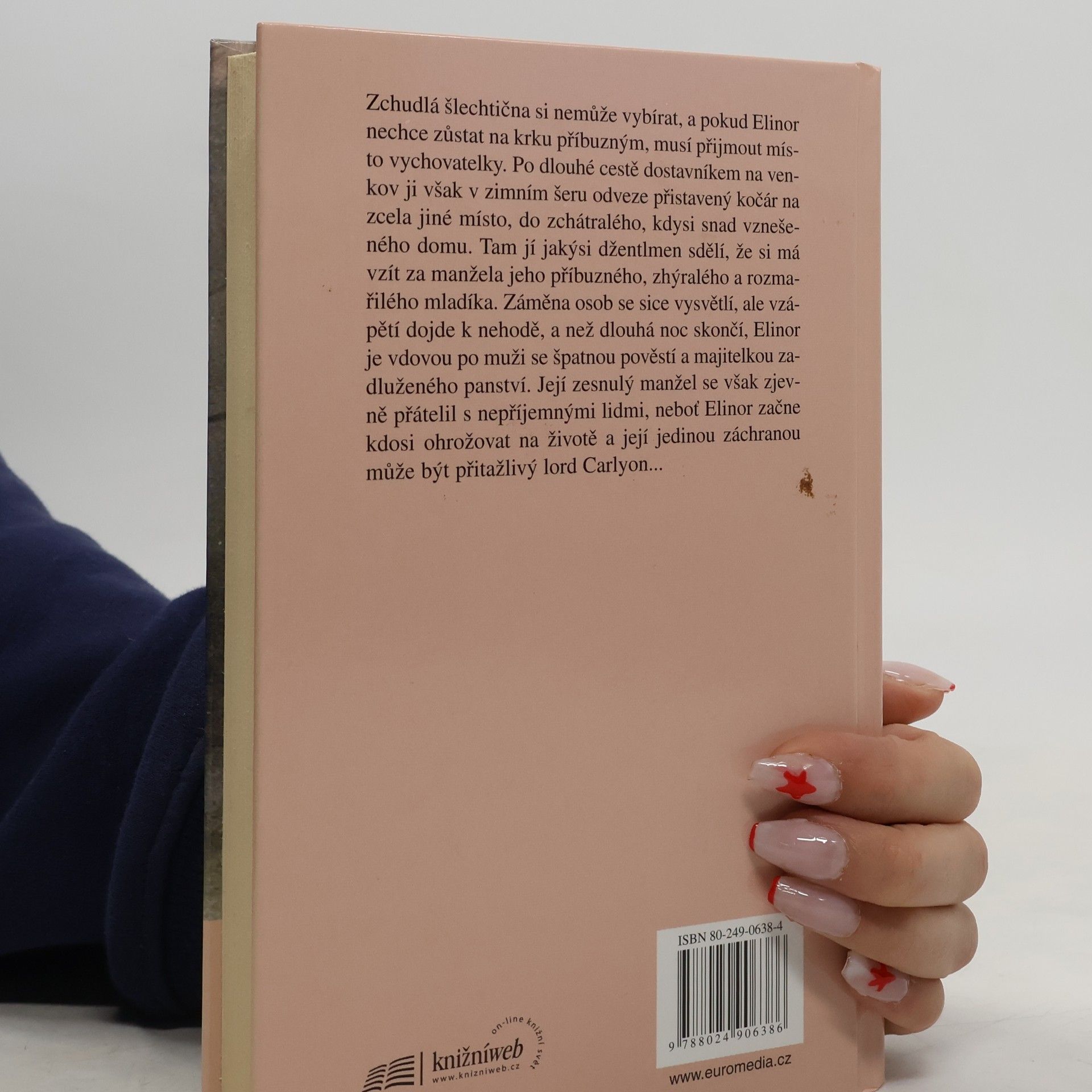 Lehký romanticko-dobrodružný příběh. Zchudlá šlechtična Elinor je nucena přijmout místo guvernantky na venkově. Dojde však k záměně: kočár ji odveze do jiného sídla, kde lord Carlyon očekává ženu, jež slíbila, že se za úplatu provdá za zhýralého a zadluženého mladíka. Když se omyl vysvětlí, přichází zpráva, že dotyčný byl těžce zraněn ve rvačce, a lord přesvědčí Elinor, aby se za umírajícího provdala. Než noc skončí, je vdovou po muži se špatnou pověstí a paní zadluženého panství. A navíc se o staré sídlo zajímají francouzští agenti, neboť Elinořin zesnulý manžel se zřejmě zapletl i do špionáže... Nakonec se všechno elegantně rozuzlí a mladá vdova získá nečekaného nápadníka...