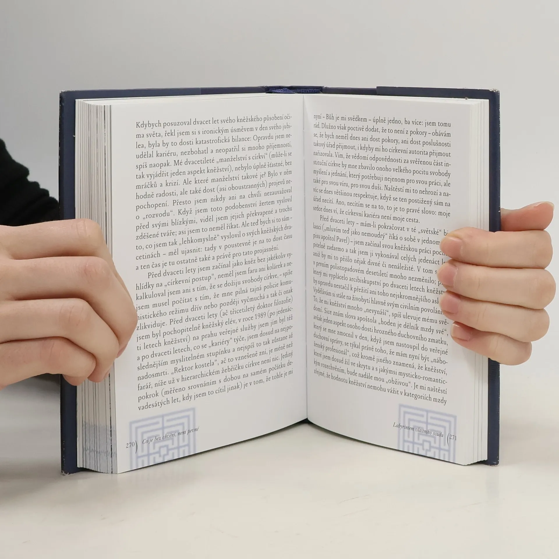 Zkušenosti z cest po všech šesti kontinentech Země i z hledání vlastního místa v náboženském a občansko-politickém životě jsou autorovi východiskem pro čtrnáct úvah o stěžejních duchovních a civilizačních problémech naší doby. Na cestě labyrintem dnešního světa, labyrintem vlastního osudu i labyrintem soudobého filozofického a náboženského myšlení autor rozvíjí trvalý dialog víry a pochybnosti jako dvou sester, které se vzájemně potřebují a doplňují.