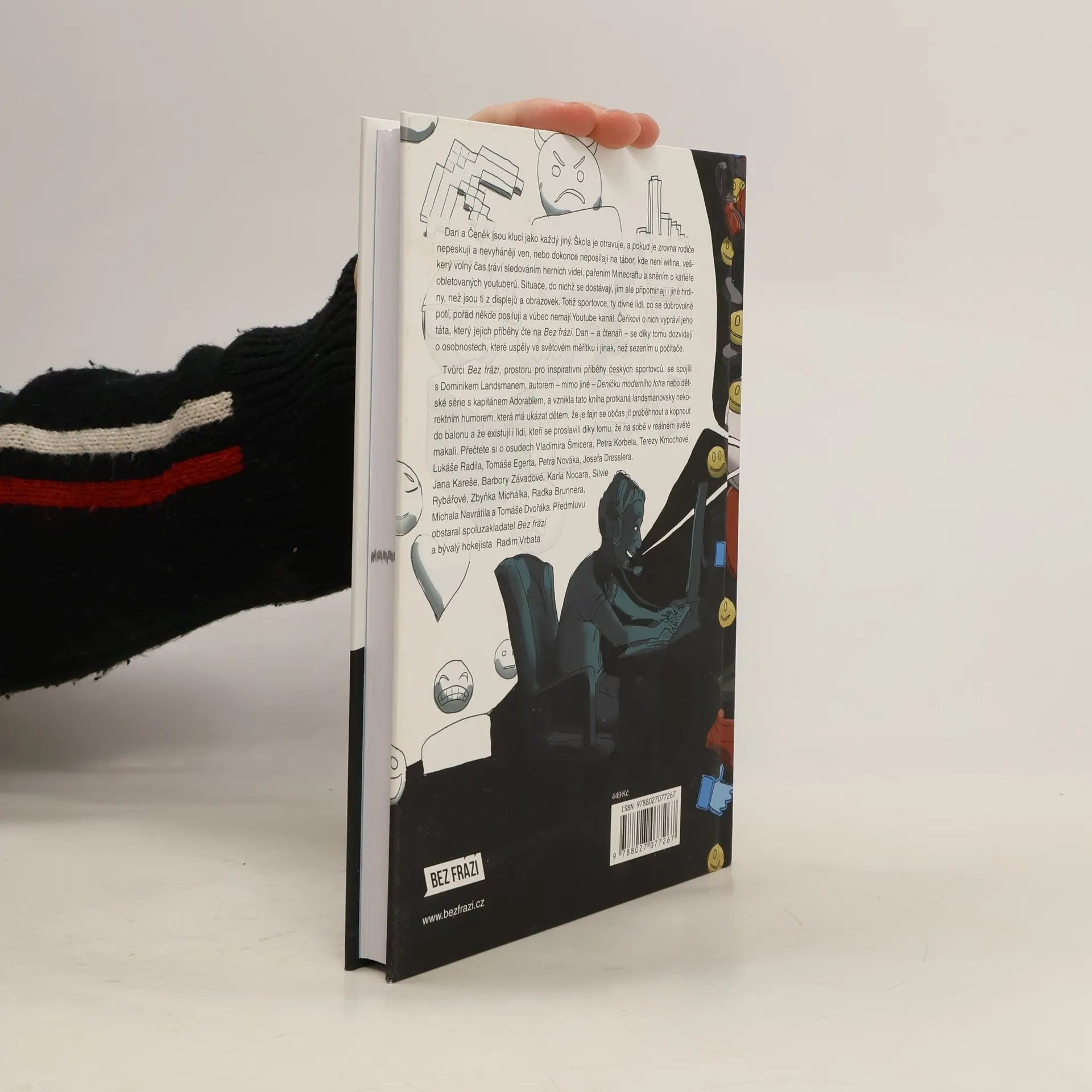 Příběhy Bez frází pro děti přinášejí osudy výjimečných českých sportovců, které vypráví oblíbený spisovatel Dominik Landsman tak, aby jim rozuměli i školáci. Hlavní postavy, Dan a Čeněk, jsou kluci, kteří se potýkají s nudou ve škole, a když je rodiče nevyhánějí ven, tráví čas sledováním herních videí a sněním o kariéře youtuberů. Čeněk se ale dozvídá o sportovcích, kteří se snaží uspět v reálném světě, a to mu pomáhá pochopit, že existují i jiní hrdinové než ti z obrazovek. Kniha, plná Landsmanova nekorektního humoru, ukazuje dětem, že je důležité občas se hýbat a usilovat o své sny. Bez frází spojilo síly s Dominikem Landsmanem a výsledkem je dílo, které motivuje k aktivnímu životnímu stylu. Formát „klasických“ Bez frází zahrnuje 210 stran, na kterých Dan a Čeněk řeší příběhy sportovců jako Vladimír Šmicera, Petr Korbel, Tereza Kmochová a další. Předmluvu napsal spoluzakladatel Bez frází Radim Vrbata. Kniha je určena pro děti, které se chtějí inspirovat úspěchy sportovců a naučit se, že tvrdá práce a odhodlání mohou vést k úspěchu.