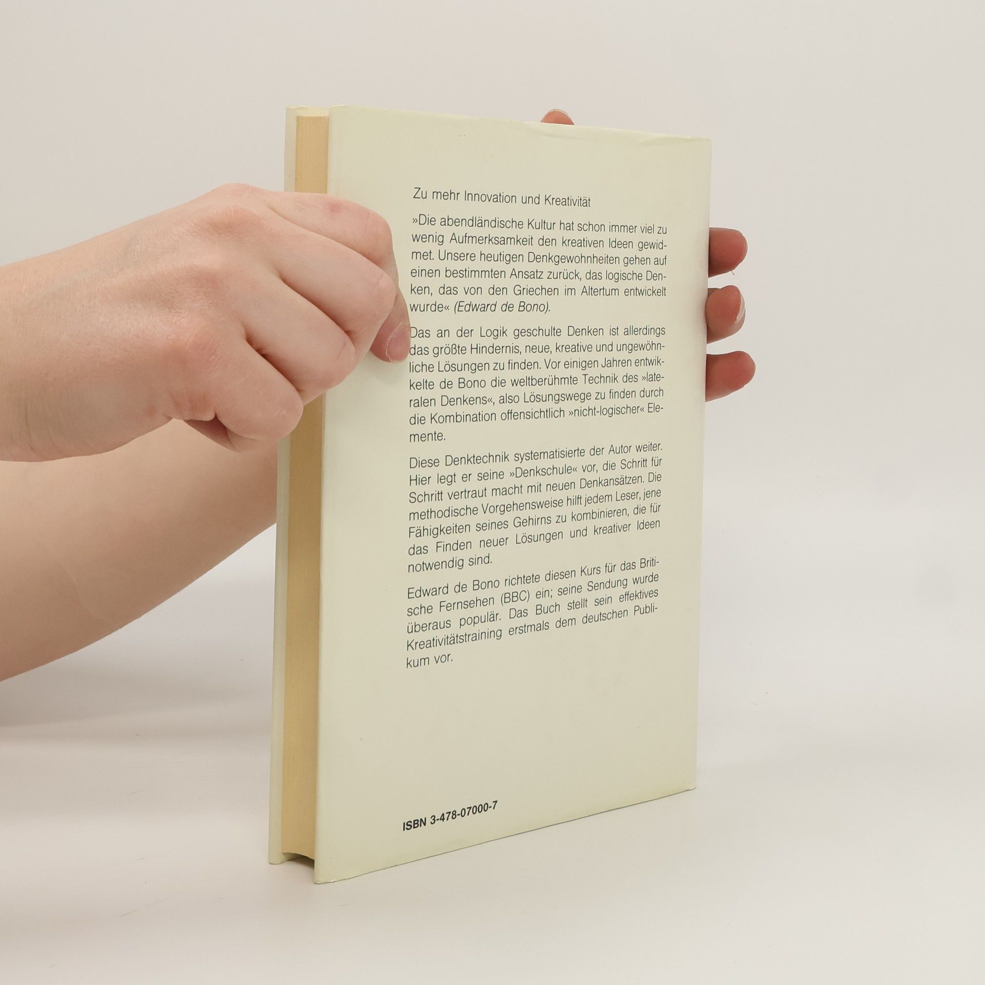 Edward de Bono ist eine weltweit anerkannte Autorität zu den Themen Kreativität und effektives Denken. In seinem Bestseller De Bonos neue Denkschule zeigt er, dass die meisten intelligenten Menschen ihr Potential nicht voll ausschöpfen: Anstelle guter Lösungen hervorzubringen sind sie damit beschäftigt, ihren persönlichen Standpunkt zu verteidigen, so dass sie es gar nicht nötig haben, weiter zu denken. De Bonos neue Denkschule vermittelt Leserinnen und Leser, wie sie stattdessen zahlreichere und bessere Lösungen sowie Ideen finden und Ihre Wahrnehmung schärfen - denn: kein gutes Output ohne gutes Input!