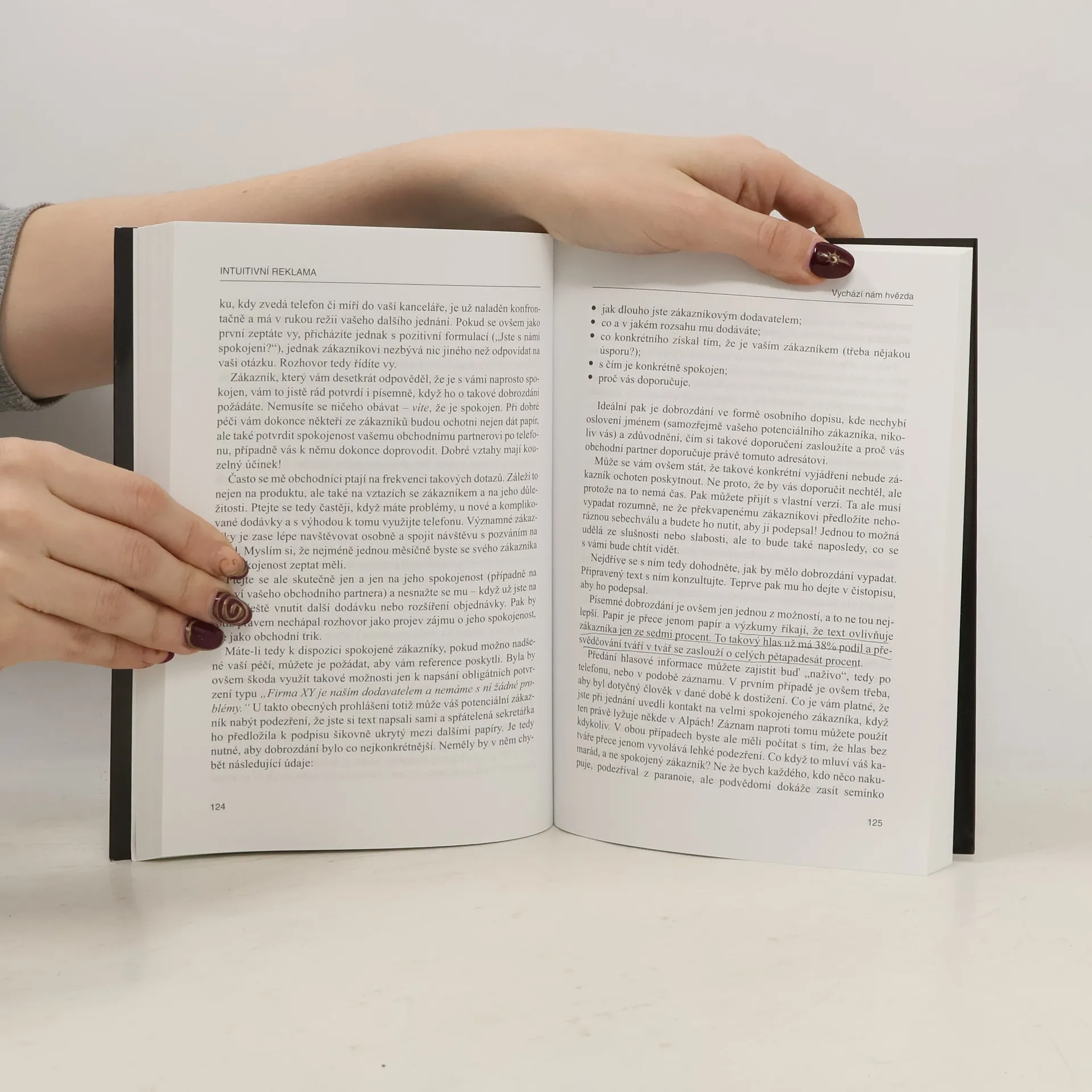 niha obsahuje celkem třicet kapitol (kromě úvodu a závěru), každá z nich nese určitou myšlenku a snaží se ji vysvětlit. Na začátku kapitoly je vždy citát vztahující se k tématu a na konci zase trojice hlavních doporučení. Pokud se někomu nechce číst knihu celou, může se zaměřit na tyto body a v rychlosti (i když to samozřejmě těžko nahradí plnohodnotné přečtení) načerpat aspoň část toho, o čem se píše. Jednotlivé kapitoly procházejí prakticky vším, co člověka může v souvislosti s reklamou napadnout – od historie reklamy, přes záležitosti značek, reklamu v tisku či rozhlasu nebo na Internetu, až po základní doporučení, jak reklama vypadat rozhodně nemá.