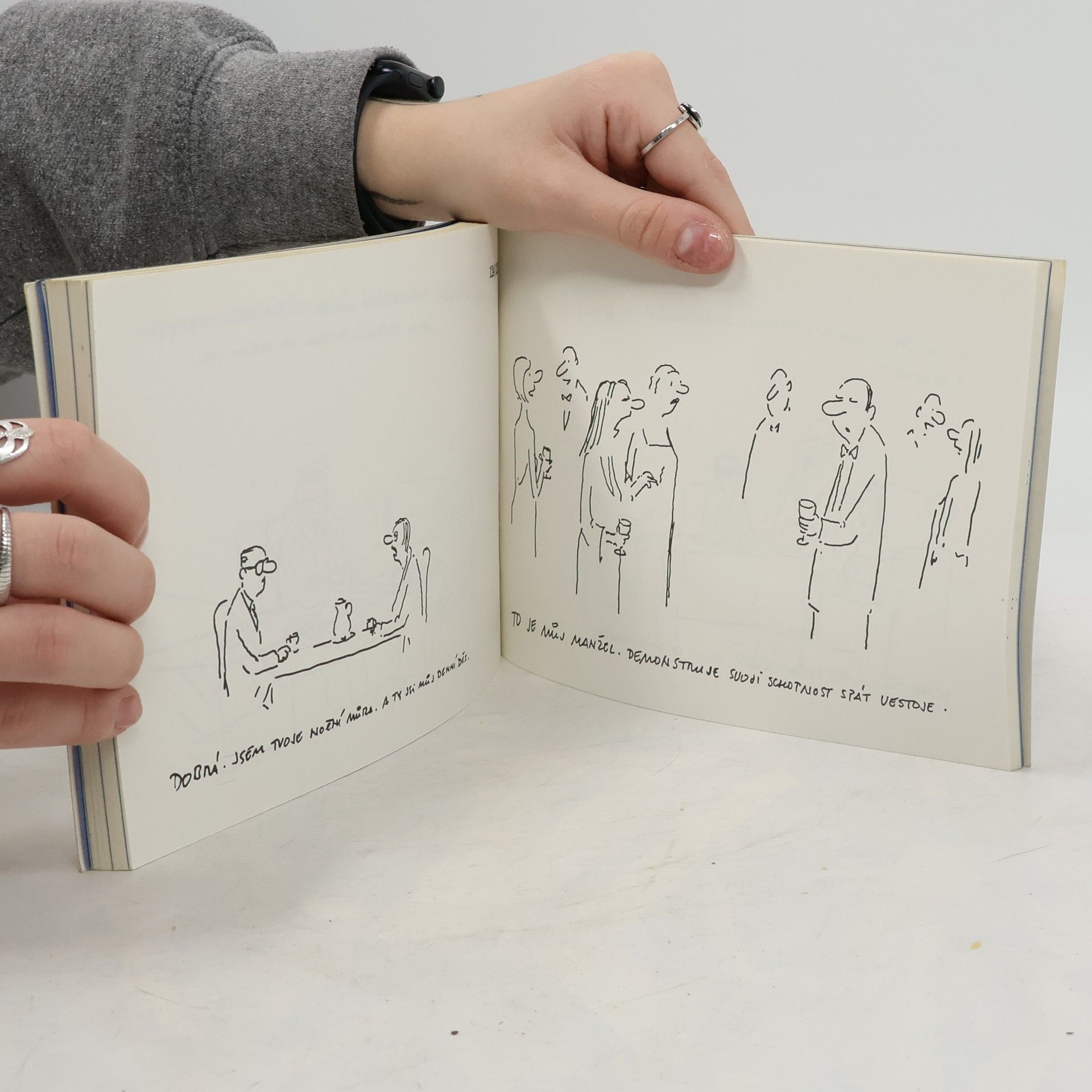 Kniha kreslených vtipů Vladimíra Jiránka, členěná do 3 tématických okruhů: 1) Literární kavárna 2) Velká společnost 3) Knížka pro snílky