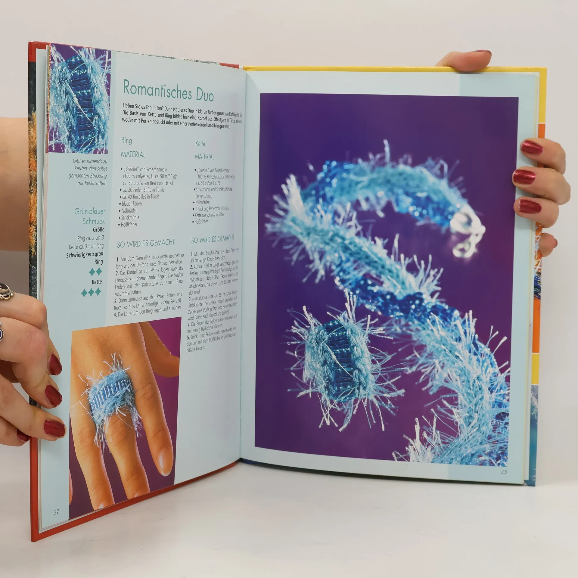 Der neue Trend: Schmuck stricken! Attraktive Kollektionen aus effektvollen Garnen mit Strickliesel, Strickmühle oder Stricknadeln schnell selber anfertigen. Dekorative Designs und moderne Farben für jedes Outfit und jeden Anlass; Halsketten, Armbänder, Ringe und mehr. Extra: Schmuck stricken im Foto-Grundkurs Schritt für Schritt erklärt.