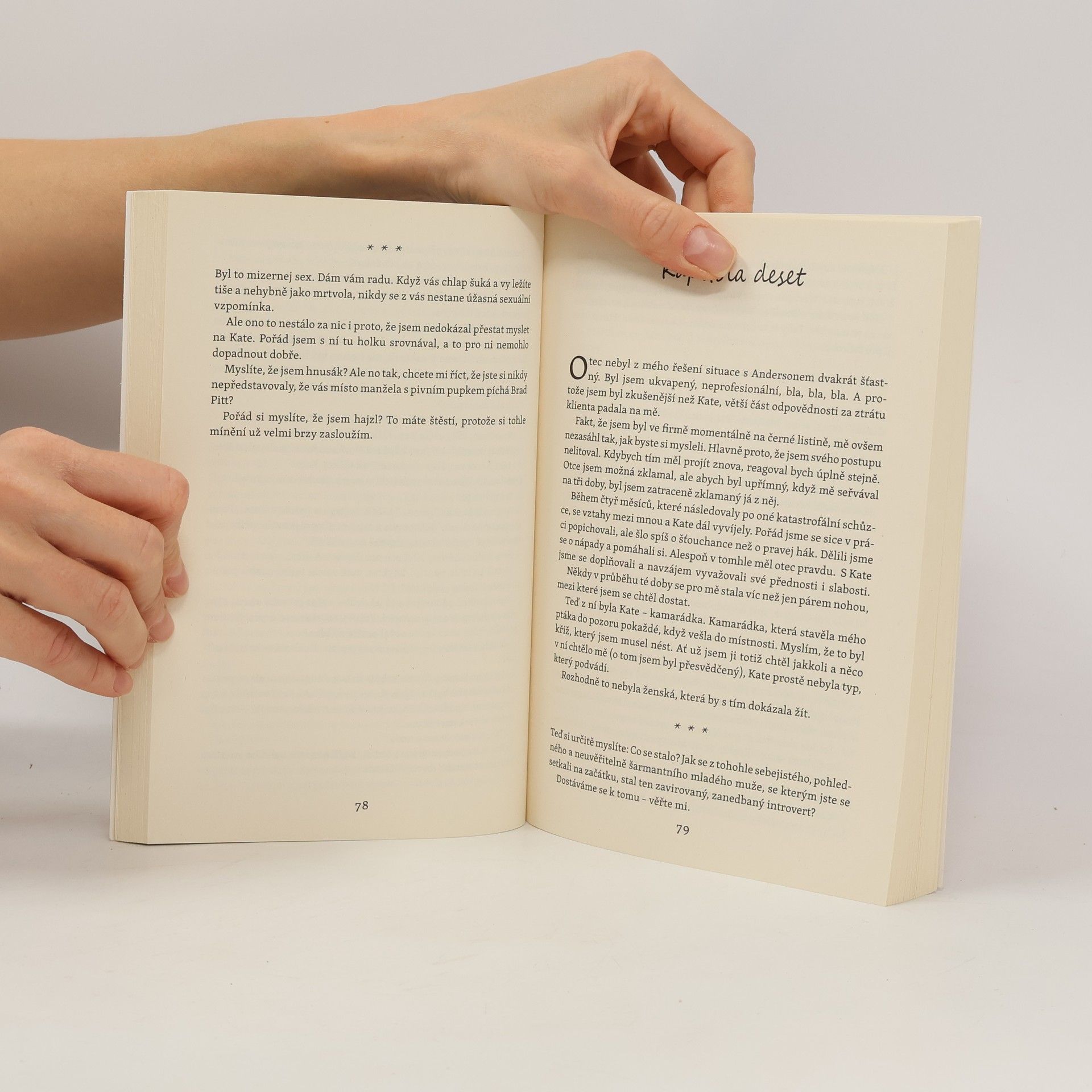 Drew Evans, úspěšný třicátník se sebevědomím až do stropu, svůj život miluje a rozhodně v něm nehodlá cokoliv měnit. Proč taky? Přes týden září v otcově koncernu, o víkendu v nočních klubech. Vztah? Láska? K čemu! Ženy na něj stojí frontu a jemu jeho životní motto „nevstoupíš dvakrát do stejné řeky“ plně vyhovuje. Alespoň do té doby, než potká Kate, svou novou kolegyni s vlasy po pás a jazykem jako břitva. Jenže Kate má před svatbou, na aférky si nepotrpí, a jak se zdá, ani na Drewa... A že mu v práci šlape na paty? Tak to už, kočka, trochu přehání, ne? Jenže zákonům přitažlivosti neporučíš a muži jsou tvorové nejen ješitní, ale i bojovní. Zvlášť, když se zamilují...