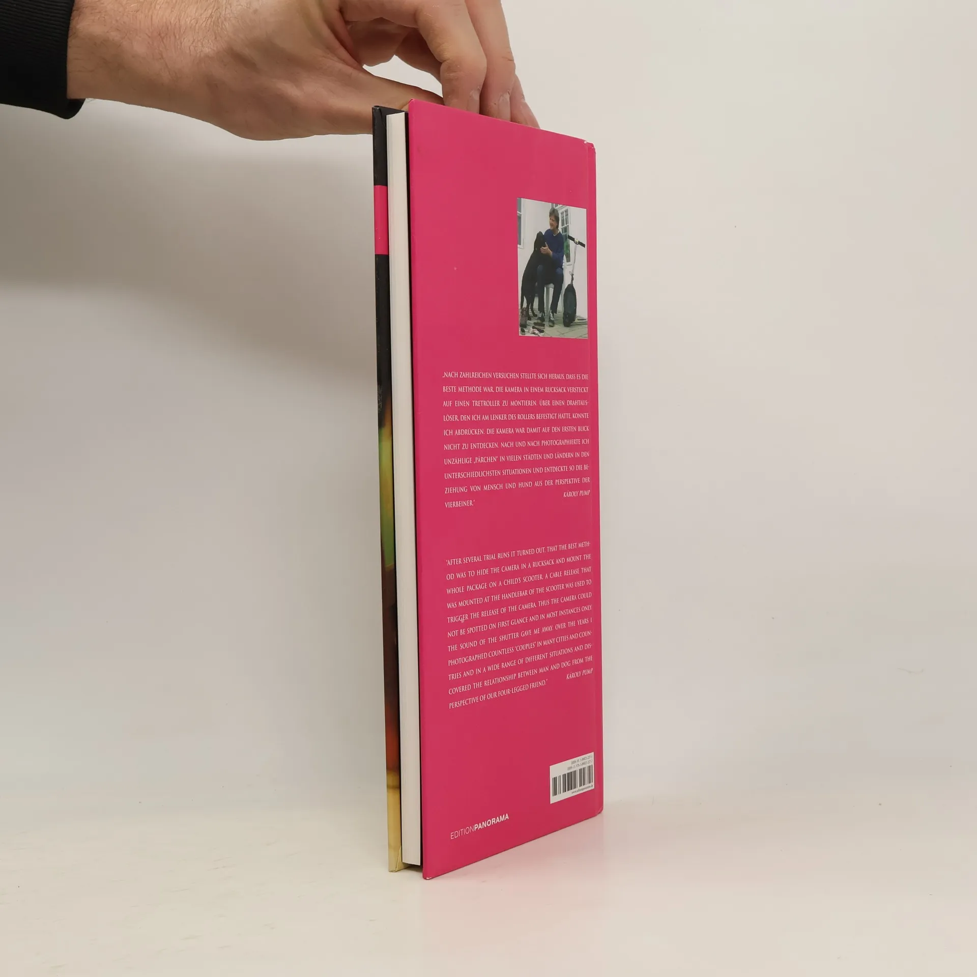 Károly Pump hat für dieses Projekt seine Panoramakamera in einem Rucksack versteckt, auf einen Tretroller montiert und damit Europas Städte und Dörfer befahren. Viel Geschick und umfangreiches Training war notwendig, um vollkommen unbemerkt den Auslöser am Lenker zu betätigen. Entstanden sind so Aufnahmen, die die Beziehung von Mensch und Hund im Alltag aus der uns vollkommen unbekannten Perspektive der Vierbeiner zeigen.