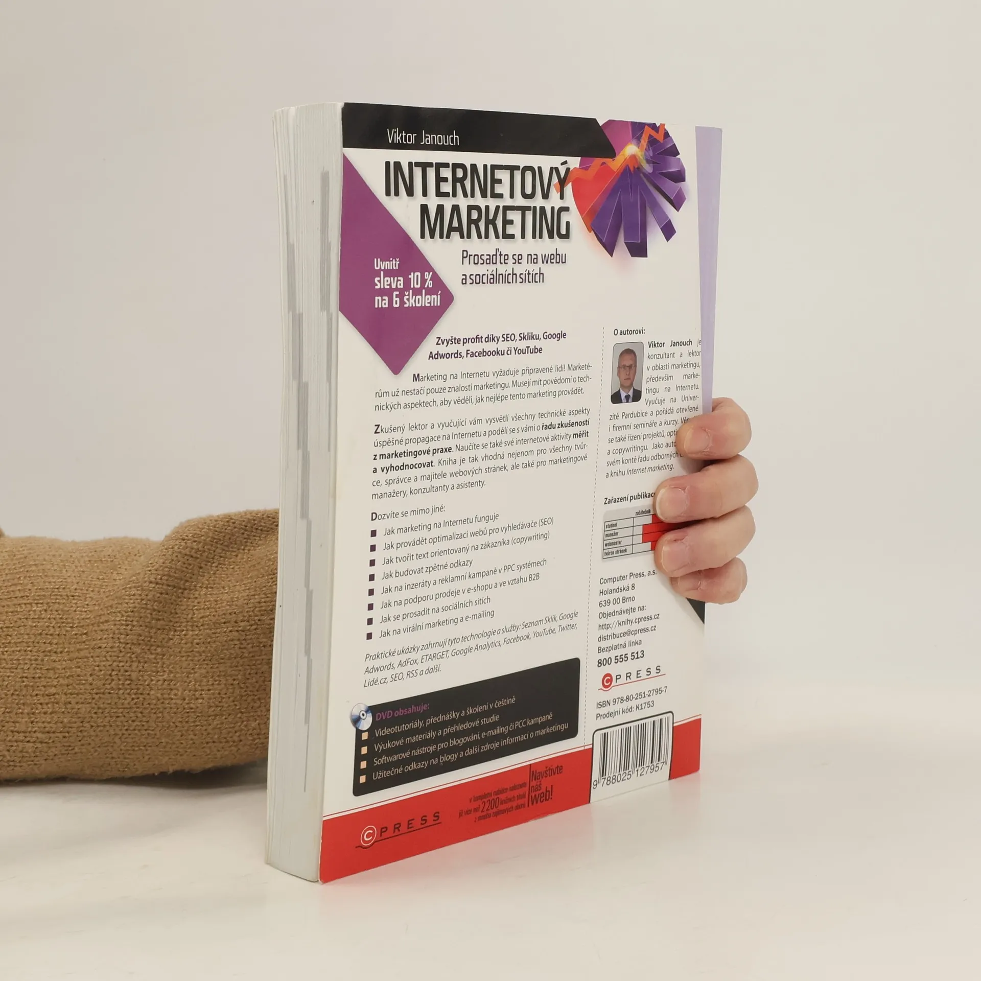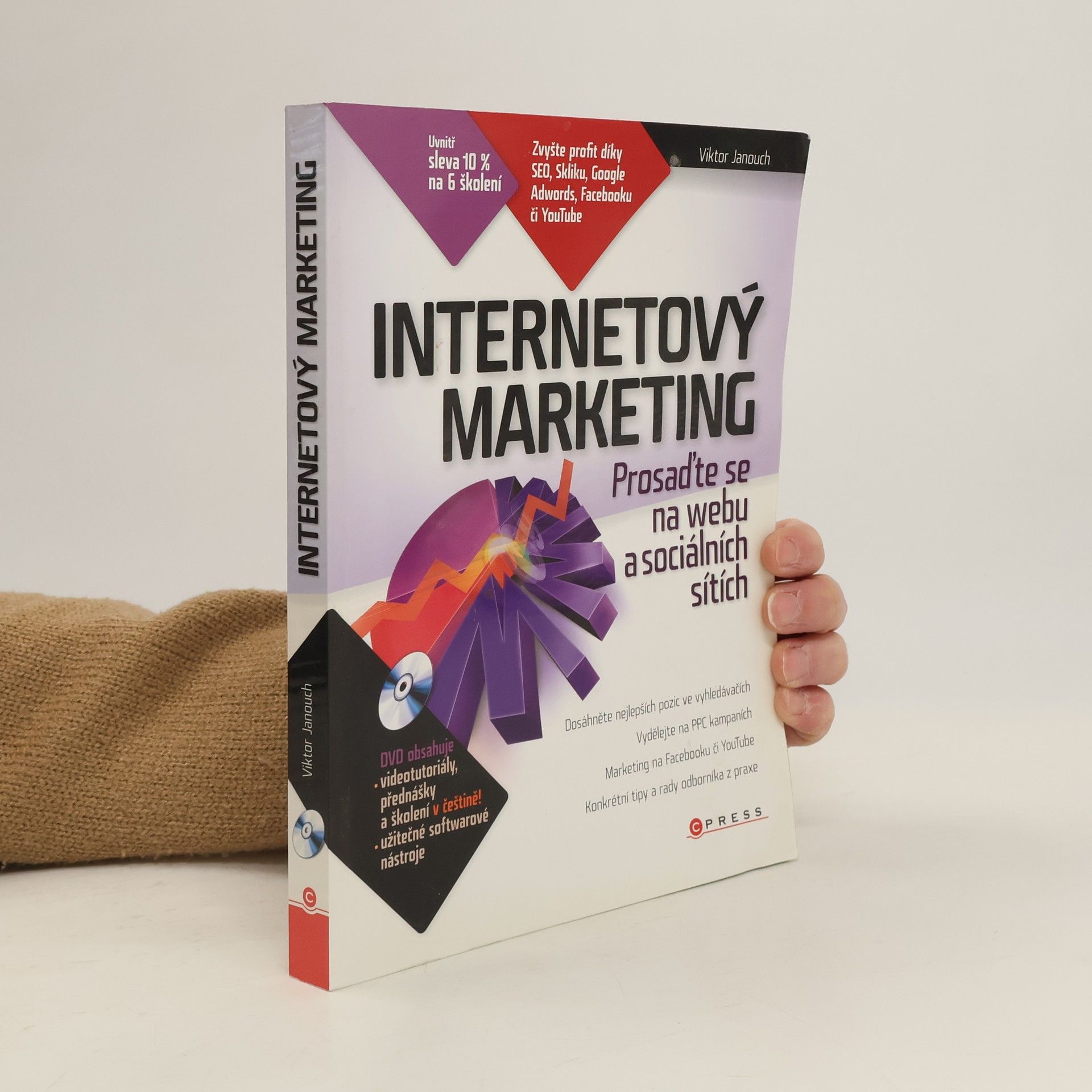 Zvyšte svůj profit díky SEO, Skliku, Google Adwords, Facebooku či YouTube! Marketing na Internetu vyžaduje připravené lidi, kteří mají nejen znalosti marketingu, ale také povědomí o technických aspektech. Zkušený lektor vám vysvětlí všechny technické aspekty úspěšné propagace a podělí se o cenné zkušenosti z praxe. Naučíte se měřit a vyhodnocovat své internetové aktivity. Kniha je určena tvůrcům, správcům a majitelům webových stránek, marketingovým manažerům, konzultantům a asistentům. Dozvíte se, jak marketing na Internetu funguje, jak provádět optimalizaci webů pro vyhledávače (SEO), jak tvořit texty orientované na zákazníka (copywriting), budovat zpětné odkazy, spravovat inzeráty a reklamní kampaně v PPC systémech, podporovat prodej v e-shopu a ve vztahu B2B, prosadit se na sociálních sítích, a jak na virální marketing a e-mailing. Praktické ukázky zahrnují technologie a služby jako Seznam Sklik, Google Adwords, Google Analytics, Facebook a další. DVD obsahuje videotutoriály, školení, výukové materiály a užitečné odkazy na blogy a další zdroje informací o marketingu. Autor, Viktor Janouch, je konzultant a lektor v oblasti marketingu, vyučuje na Univerzitě Pardubice a má na svém kontě řadu odborných článků.