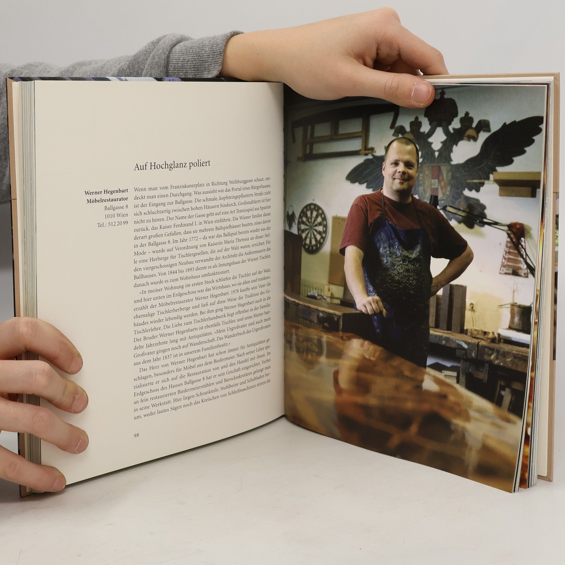 "Zielsicher fischt die Arbeiterin mit der Pinzette eine hellblau glänzende Zuckerperle aus dem Schüsserl und legt diese behutsam auf die noch weiche Kouvertüre des Konfekts. Auf keinen Fall soll sie einsinken. In 'Echt wienerisch' erfahren Sie von der aufwendigen Handarbeit des Liliput-Konfekts von Altmann & Kühne; der Antiquitäten-Tischler Werner Hegenbarth weiht den Leser in die Geheimnisse seiner Schellack-Politur ein und die 'Linen-Lady' von der 'Schwäbischen Jungfrau' am Graben verrät, welche Bettwäsche Kaiserin Sisi bevorzugte. Erzählt wird in diesem Buch von Leuten und ihren Läden – und von ihrem Leben in der Lücke. Da passt sowohl das Motto 'Small is beautiful' als auch 'Es gibt sie noch, die guten alten Dinge'. Ernestine Stadler mit ihren einfühlsamen Texten und Frank Taubenheim mit seinen atmosphärisch dichten Fotos wenden sich mit einer gelungenen Auswahl an typisch Wienerischem an die Bewohner der Stadt ebenso wie an die Wien-Besucher. Angesprochen werden alle globalisierungskritischen Menschen, die Inseln der Individualität zu schätzen wissen."