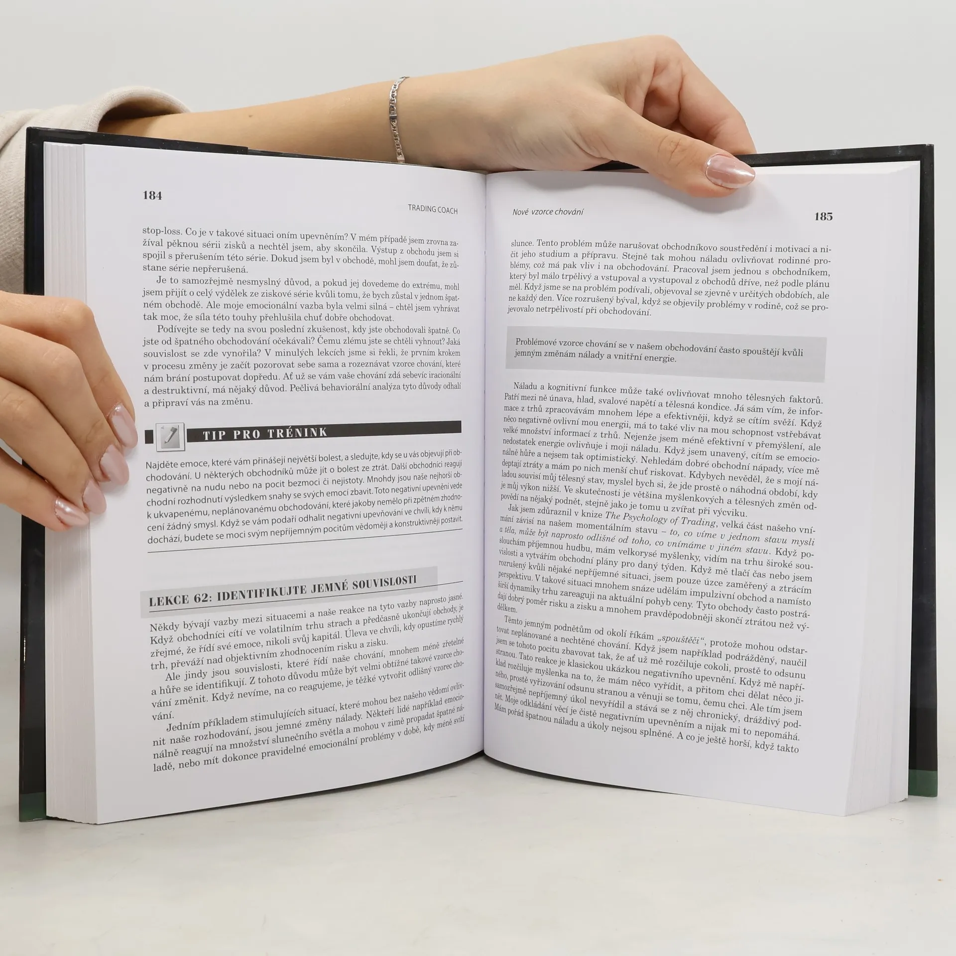 Kniha se skládá z celkem 10 kapitol, které dále delí knihu na celkem 101 konkrétních psychologických lekcí. Obsah knihy: Kapitola 1 – Změna: Samotný proces a jeho uskutečňování Kapitola 2 – Stres a úzkost: Kreativní zvládání zátěže pri obchodování Kapitola 3 – Psychická pohoda: Lepší obchodní zážitky Kapitola 4 – Kroky ke zlepšení: Proces tréninku sebe sama Kapitola 5 – Odstranéní starého chování: Psychodynamické prostředí pro trénink sebe sama Kapitola 6 – Přesměrování mysli: Kognitivní přístupy k tréninku sebe sama Kapitola 7 – Nové vzorce chování: Behaviorální přístupy k tréninku sebe sama Kapitola 8 – Rozvoj vašeho obchodního byznysu Kapitola 9 – Lekce od profesionálních obchodníku: Zdroje a pohledy na trénink sebe sama Kapitola 10 – Hledání obchodní výhody: Zkoumání historických patternů v trzích