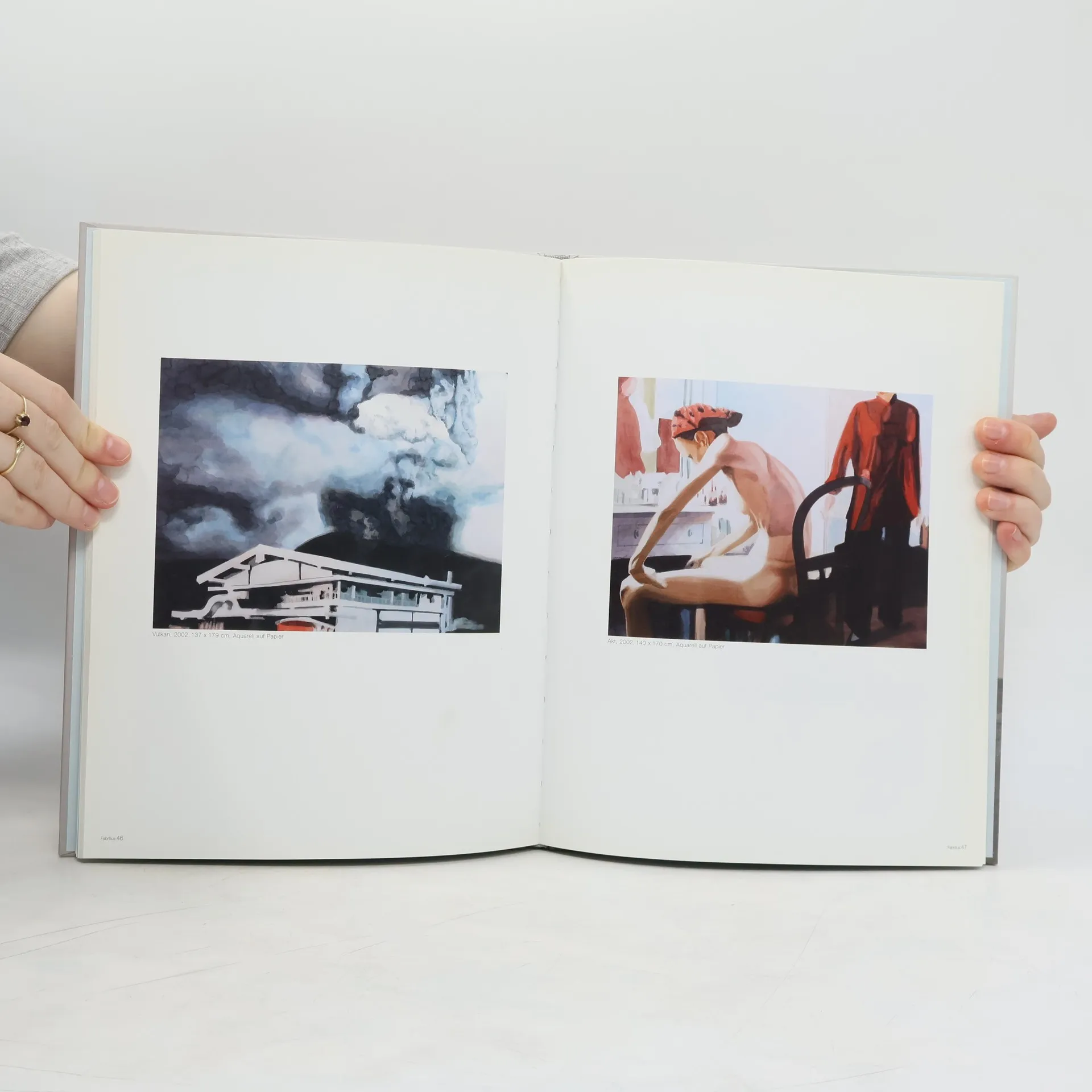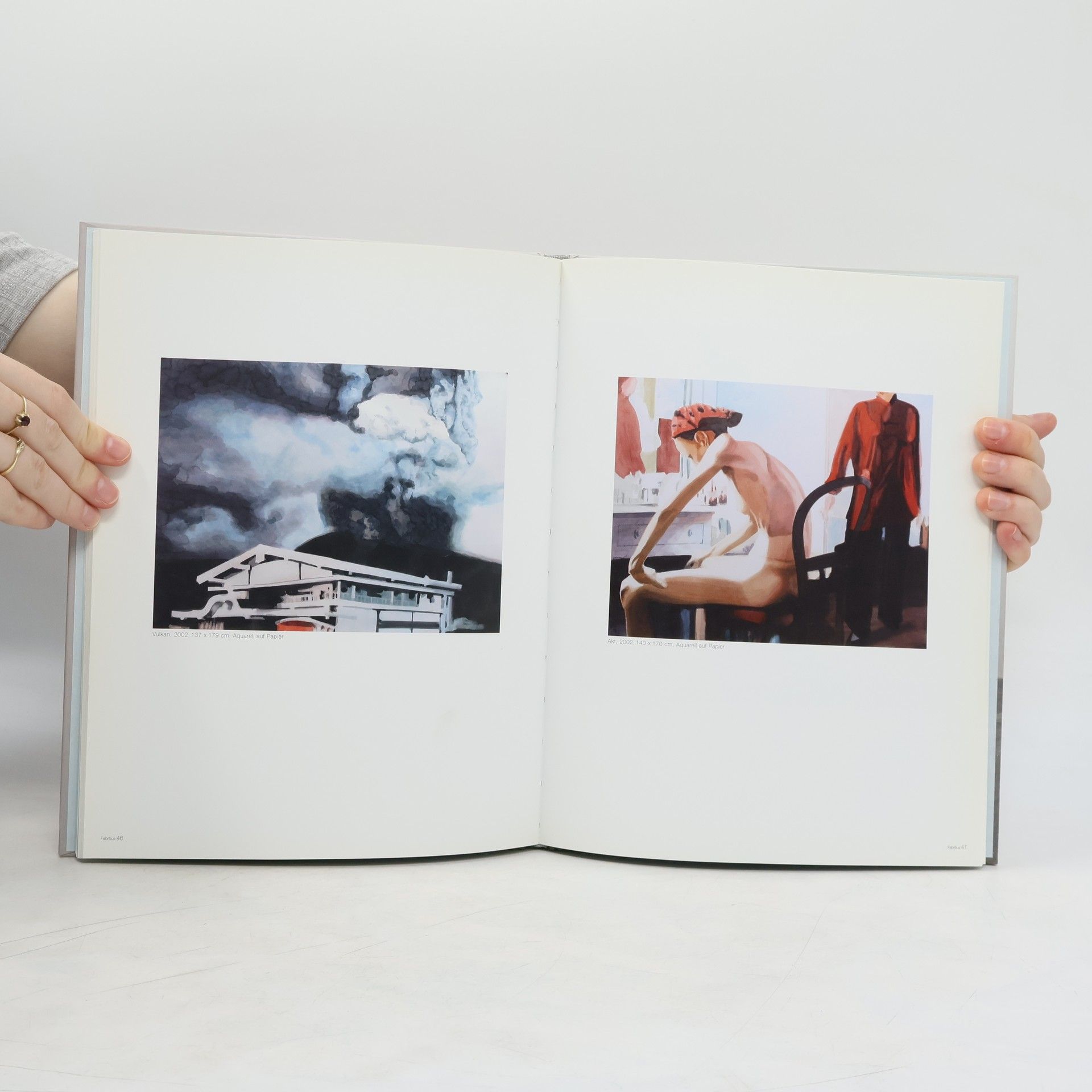 Seine Motive findet Tom Fabritius in der Bilderflut des Fernsehens. Ausgerüstet mit einer Kamera zappt er sich durch die Programme und nimmt schnell und intuitiv einzelne Bildmomente auf. Aus diesem Konvolut wählt er einzelne Bilder aus, die er dann aquarelliert – nicht fotorealistisch, sondern ein wenig plakativ, reduziert vor einem zum Teil stilisierten Hintergrund. Durch die ÜberSetzung ins Aquarell fixiert der Künstler das Typische dieser Bildwelten.