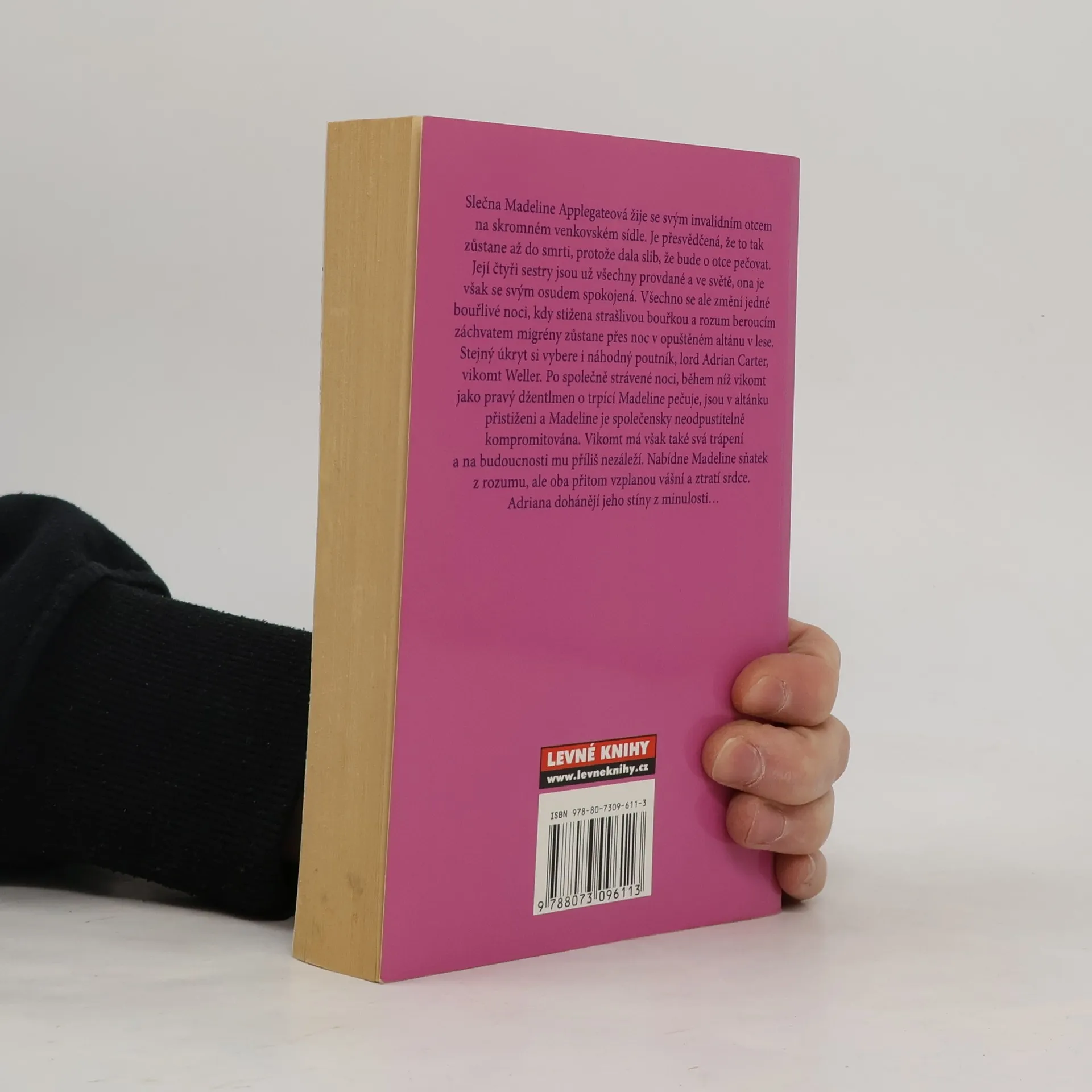 Slečna Madeline Applegateová žije se svým invalidním otcem na skromném venkovském sídle. Je přesvědčená, že to tak zůstane až do smrti, protože dala slib, že bude o otce pečovat. Její všechny sestry jsou už všechny provdané a ve světě, ona je však se svým osudem spokojená. Všechno se ale změní jedné bouřlivé noci, kdy stižena rozum beroucím záchvatem migrény zůstane přes noc v opuštěném altánu v lese. Stejný úkryt si vybere i náhodný poutník - lord Carter, vikomt Weller. Po společně strávené noci, během níž vikomt jako pravý džentlmen o trpící Madeline pečuje, jsou v altánku přistiženi a Madeline je společesnky neodpustitelně kompromitována. Vikomt má však také svá trápení a na budoucnosti mu příliš nezáleží. Nabídne Madeline sňatek z rozumu, ale oba přitom vzplanou vášní a ztratí srdce. Adriana však dohánějí jeho stíny z minulosti…