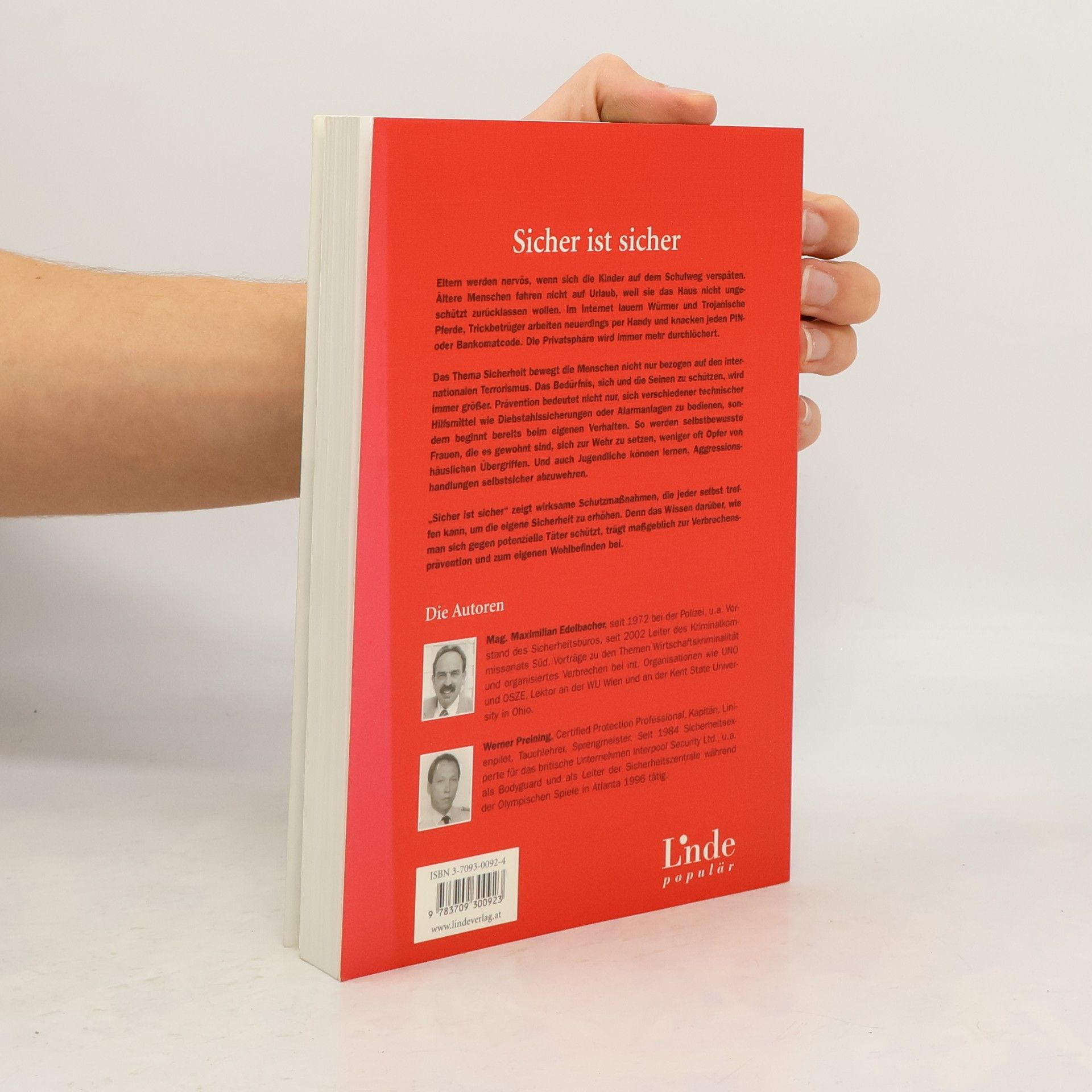 Eltern werden nervös, wenn sich die Kinder auf dem Schulweg verspäten. Ältere Menschen fahren nicht auf Urlaub, weil sie das Haus nicht ungeschützt zurücklassen wollen. Im Internet lauern Würmer und Trojanische Pferde, Trickbetrüger arbeiten neuerdings per Handy und knacken jeden PIN- oder Bankomatcode. Die Privatsphäre wird immer mehr durchlöchert. Das Thema Sicherheit bewegt die Menschen nicht nur bezogen auf den internationalen Terrorismus. Das Bedürfnis, sich und die Seinen zu schützen, wird immer größer. Prävention bedeutet nicht nur, sich verschiedener technische Hilfsmittel wie Diebstahlssicherungen oder Alarmanlagen zu bedienen, sondern beginnt bereits beim eigenen Verhalten. So werden selbstbewusste Frauen, die es gewohnt sind, sich zur Wehr zu setzen, weniger oft Opfer von häuslichen Übergriffen. Und auch Jugendliche können lernen, Aggressionshandlungen selbstsicher abzuwehren. ”Sicher ist sicher“ zeigt wirksame Schutzmaßnahmen, die jeder selbst treffen kann, um die eigene Sicherheit zu erhöhen. Denn das Wissen darüber, wie man sich gegen potenzielle Täter schützt, trägt maßgeblich zur Verbrechensprävention und zum eigenen Wohlbefinden bei.