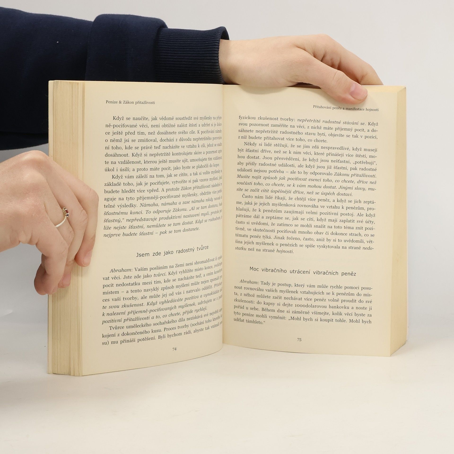 Ústředním tématem této knihy autorů Abraham-Hicks je mocný Zákon přitažlivosti jako jeden z obecně platných, všudypřítomných a ve svém působení neomylně důsledných a konzistentních zákonů vesmíru. Principy Zákona přitažlivosti a jeho působení jsou zde zasazeny do kontextu fyzické reality časoprostoru a běžných životních zkušeností, s nimiž se my lidé denně setkáváme. Abraham - vybraná skupina nadpozemských učitelů - čtenáři prostřednictvím Esther Hicksové nejen podrobně a srozumitelně vysvětluje, jak Zákon přitažlivosti působí a jak se projevuje, ale ze své širší perspektivy sděluje vědění, jemuž jsme se během prožívání našich životních zkušeností v různé míře vzdálili a k jehož probuzení nás Abraham povzbuzuje.