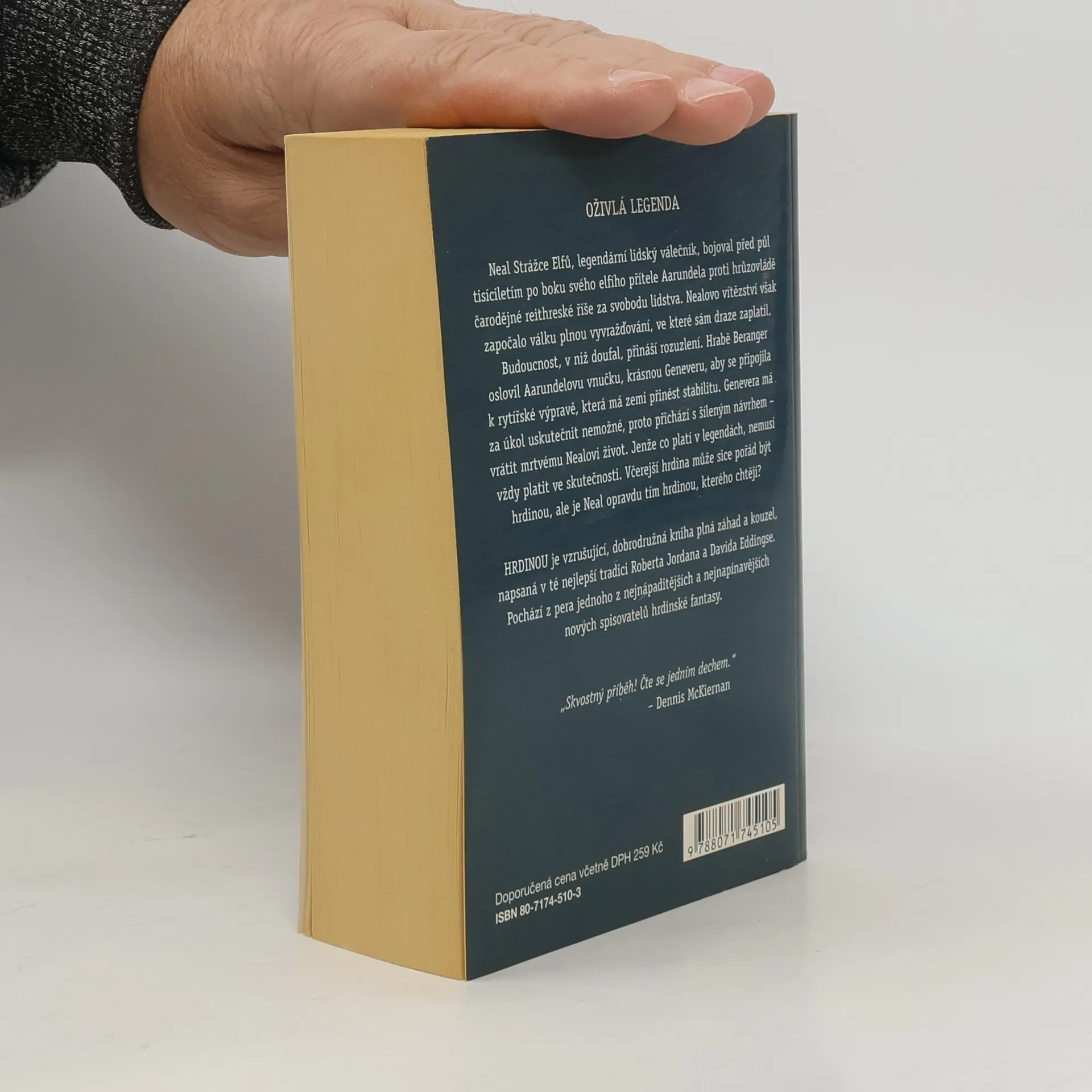 Neal Strážce Elfů, legendární lidský válečník, bojoval před půl tisíciletím po boku svého elfího přítele Aarundela proti hrůzovládě čarodějné reithreské říše za svobodu lidstva. Nealovo vítězství však započalo válku plnou vyvražďování, ve které sám draze zaplatil. Budoucnost, v niž doufal, přináší rozuzlení. Hrabě Beranger oslovil Aarundelovu vnučku, krásnou Geneveru, aby se připojila k rytířské výpravě, která má zemi přinést stabilitu. Genevera má za úkol uskutečnit nemožné, proto přichází s šíleným návrhem – vrátit mrtvému Nealovi život. Jenže co platí v legendách, nemusí vždy platit ve skutečnosti. Včerejší hrdina může sice pořád být hrdinou, ale je Neal opravdu tím hrdinou, kterého chtějí? Hrdinou je vzrušující, dobrodružná kniha plná záhad a kouzel, napsaná v té nejlepší tradici Roberta Jordana a Davida Eddingse. Pochází z pera jednoho z nejnápaditějších a nejnapínavějších nových spisovatelů hrdinské fantasy.