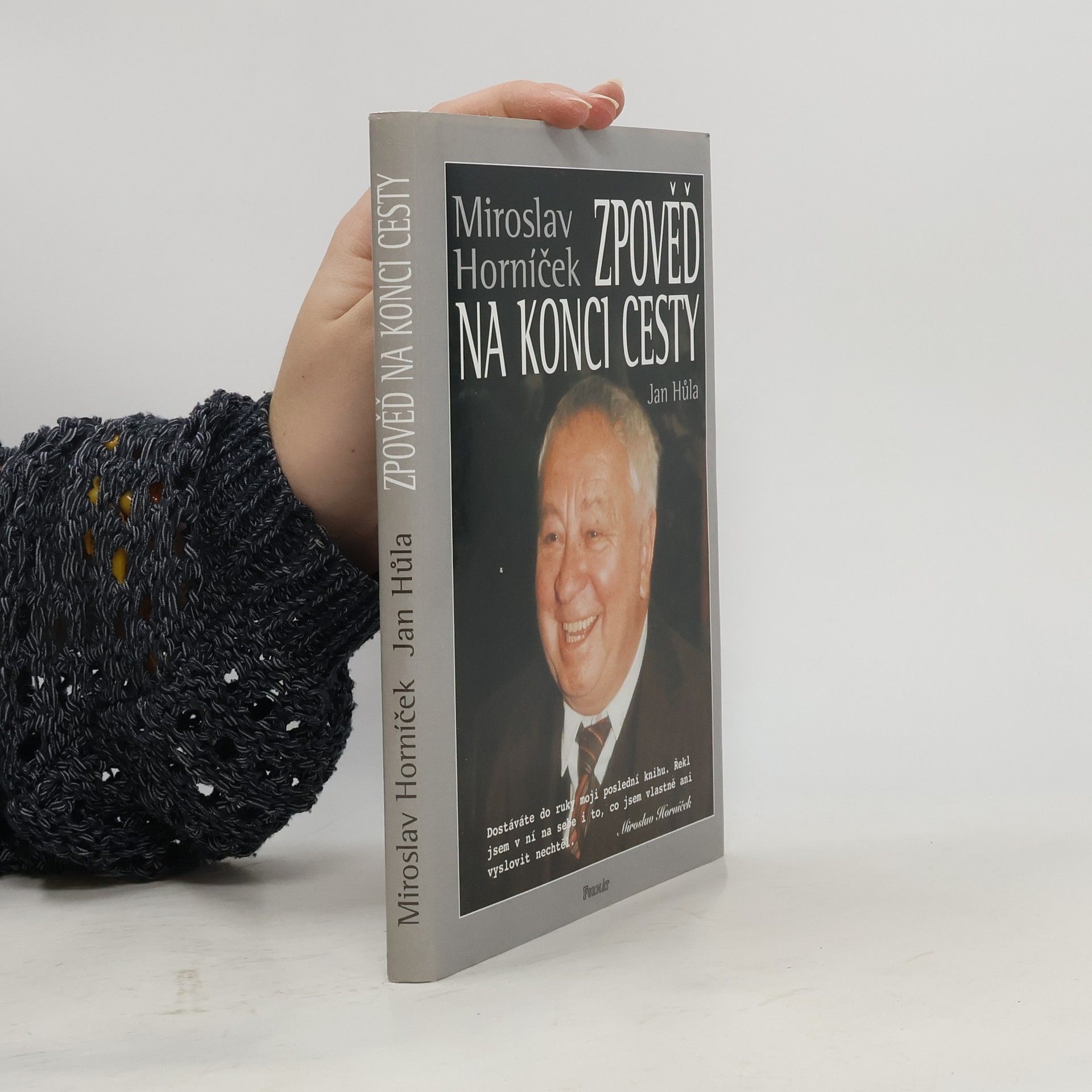 Miroslav Horníček u zpovědi na konci cesty. V rozhovoru vedeném Janem Hůlou se autor vrací k létům zralým i nezralým, k osobnostem, s nimiž se na své cestě životem setkal a ke svým trvalým láskám - herectví a výtvarnému umění. Ačkoliv má být tato knížka jakýmsi odkazem na rozloučenou, je psána s humorem charakteristickým pro spolutvůrce slavných forbín a tvůrce oblíbených Hovorů H.... celý text