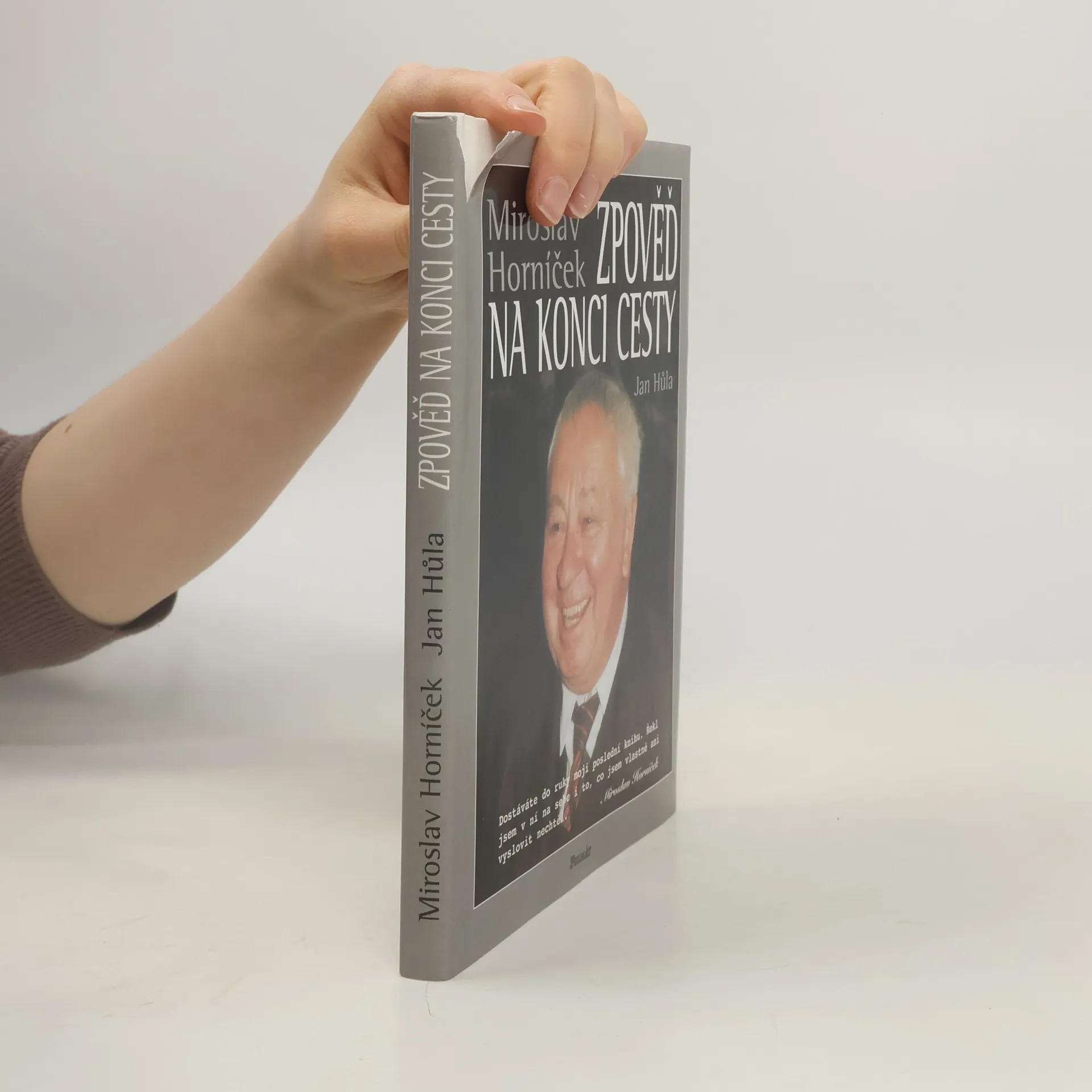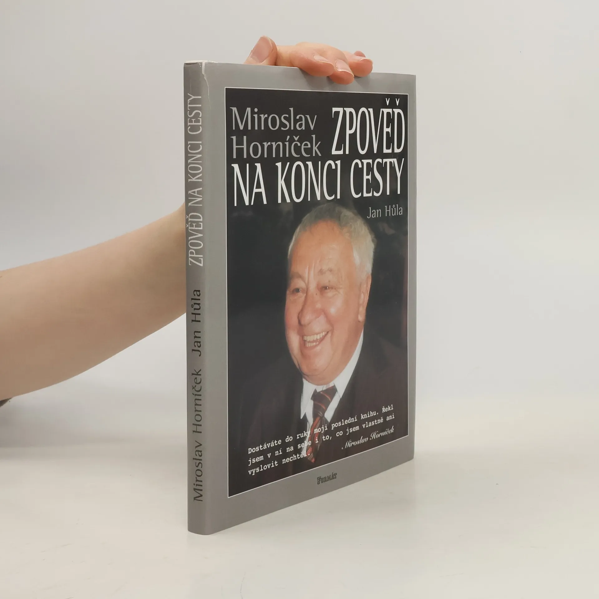 Miroslav Horníček u zpovědi na konci cesty. V rozhovoru vedeném Janem Hůlou se autor vrací k létům zralým i nezralým, k osobnostem, s nimiž se na své cestě životem setkal a ke svým trvalým láskám - herectví a výtvarnému umění. Ačkoliv má být tato knížka jakýmsi odkazem na rozloučenou, je psána s humorem charakteristickým pro spolutvůrce slavných forbín a tvůrce oblíbených Hovorů H.... celý text