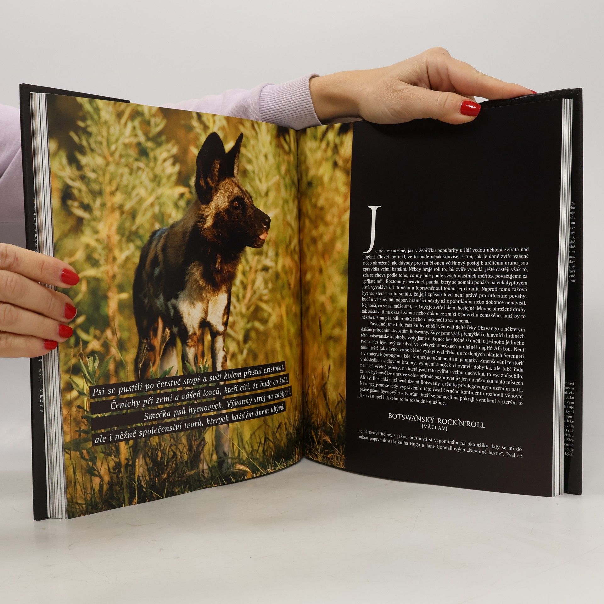 Kniha nabízí plastický obraz Afriky 21. století, nechybí v ní ani fascinující divoká příroda ani syrový obraz života současných Afričanů. Velkoryse pojaté snímky doplňují příběhy lidí i zvířat či dramatických okolností, za kterých vznikaly. Kniha nabízí unikátní propojení dvou rozdílných pohledů autorů, z nichž se každý soustředí na jiná témata a jinak je zpracovává. Lenka Klicperová se zabývá převážně tématy, která z dnešního světa postupně mizí. Zachycuje slovem i obrazem přírodní národy, které nemilosrdně pohlcuje rozpínající se západní civilizace, ale také život běžných Afričanů, jenž se vyvíjí a mění každým rokem rychleji. Václav Šilha se zaměřuje na fotografování divoké přírody, a to nejen v Africe, i když tento kontinent je jeho srdeční záležitostí. Již několik let se cíleně věnuje zachycení jedné z největších migrací zvířat na naší planetě, nekonečné pouti afrických kopytníků z východoafrické Tanzanie do Keni.