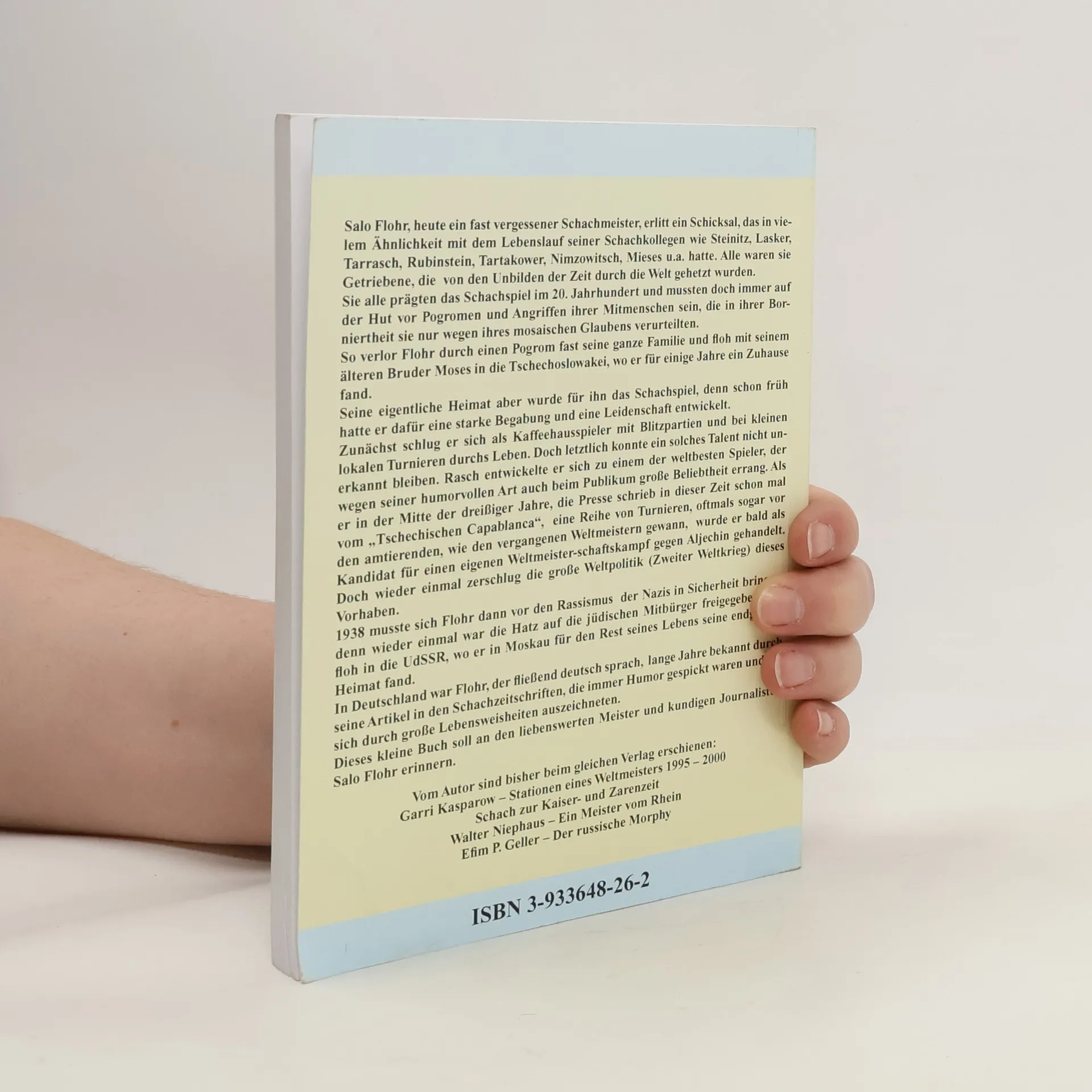 Salo Flohr, heute ein fast vergessener Schachmeister, erlitt ein Schicksal, das in vielem Ähnlichkeit mit dem Lebenslauf seiner Schachkollegen wie Steinitz, Lasker, Tarrasch, Rubinstein, Tartakower, Nimzowitsch, Mieses u. a. hatte. Alle waren sie Getriebene, die von den Unbilden der Zeit durch die Welt gehetzt wurden. Sie alle prägten das Schachspiel im 20. Jahrhundert und mussten doch immer auf der Hut vor Pogromen und Angriffen ihrer Mitmenschen sein, die in ihrer Borniertheit sie nur wegen ihres mosaischen Glaubens verurteilten. In Deutschland war Flohr, der fließend deutsch sprach, lange Jahre bekannt durch seine Artikel in den Schachzeitschriften, die immer Humor gespickt waren und die sich durch große Lebensweisheiten auszeichneten. Dieses kleine Buch soll an den liebenswerten Meister und kundigen Journalisten Salo Flohr erinnern.