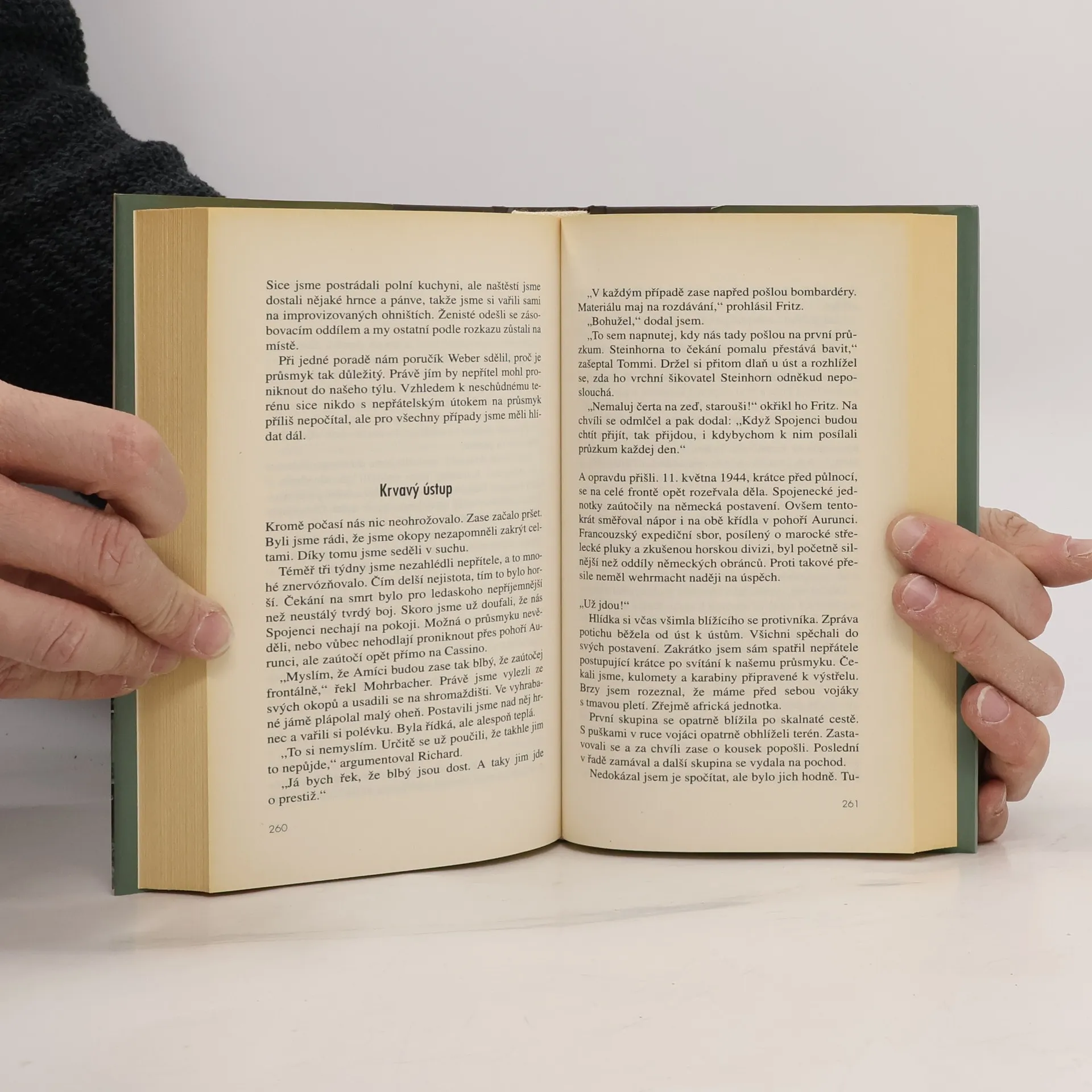 Autor s velkým smyslem pro dramatičnost převyprávěl válečné vzpomínky svého otce, který se v uniformě Wehrmachtu zúčastnil krvavých bojů u Monte Cassina. Na tomto místě odolávala německá armáda po sedm měsíců čtyřem ofenzívám spojeneckých vojsk. Autorův otec byl jistě velkým vypravěčem, jeho vzpomínky hýří smyslem pro detail i pro vyjádření kamarádských vztahů, které umožnily vojákům v zákopech zůstat lidskými i v nelidských podmínkách, a nechybí jim ani humor.