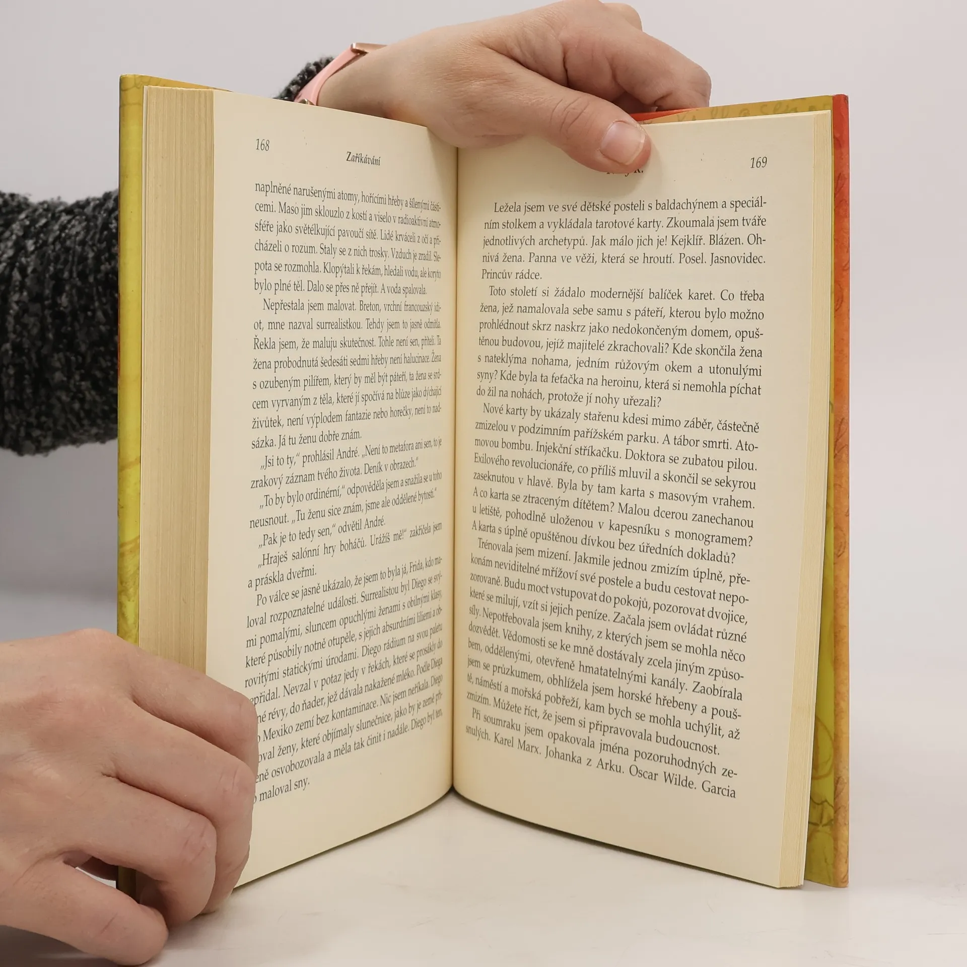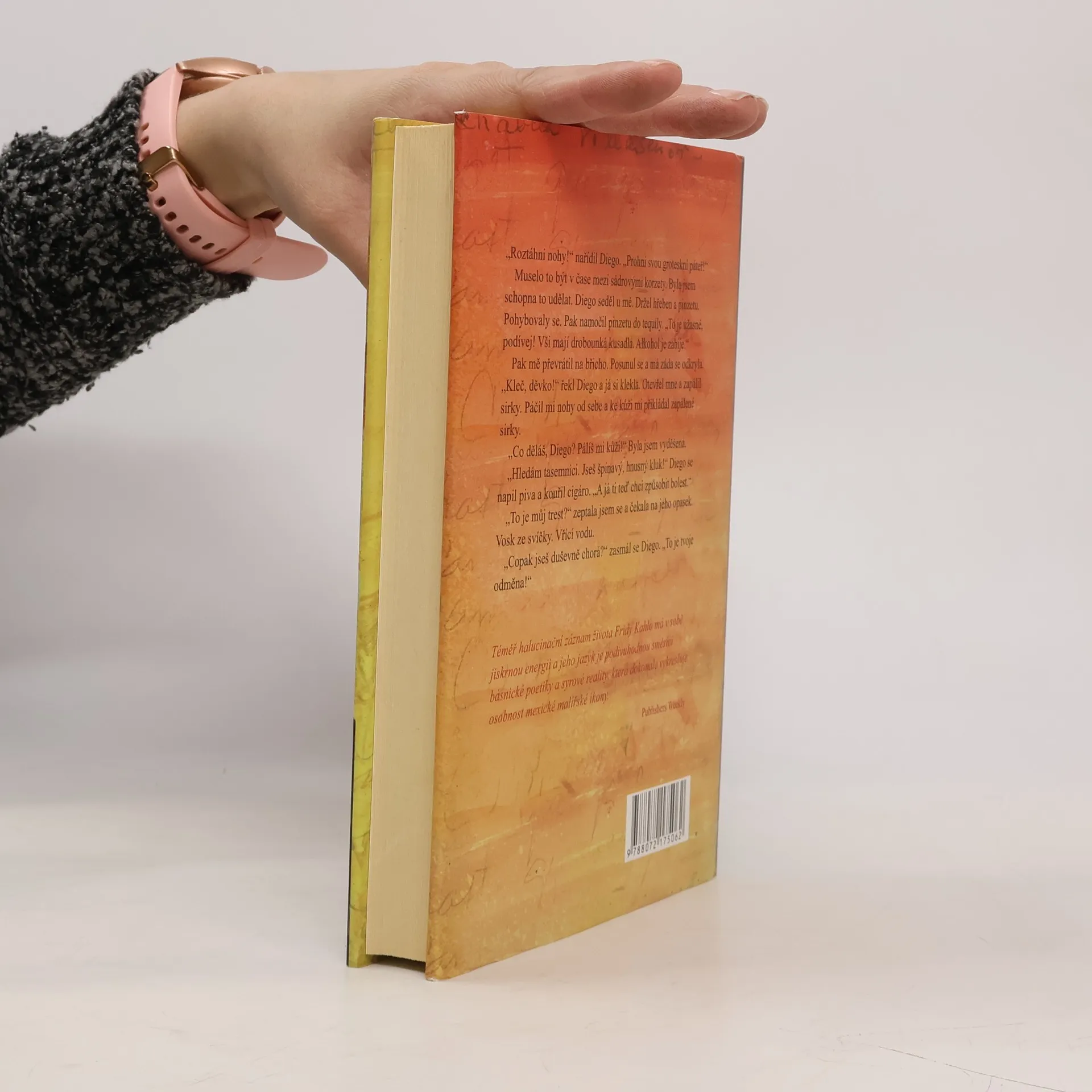 Syrový a drsný životní příběh Fridy Kahlo začíná a končí ve chvíli, kdy šestačtyřicetiletá malířka leží na smrtelné posteli a omámená sedativy a alkoholem si přehrává svůj život. Frida se na své snové pouti vrací k divokým cestám po Americe, které s manželem, slavným sochařem Diegem Riverou, zažila, k bohémskému pobytu v Paříži roku 1939 i k dětství a životu v rodném Mexiko City. Žena, která vedla život na ostří nože, nešetřila sebe ani okolí a přes svou mimořádně silnou osobnost musela žít ve stínu despotického manžela, kterého milovala a současně nenáviděla až za hrob. Americká autorka zaujme čtenáře i svým mimořádně bohatým jazykem, vytváří novou syntax, která je ovlivněna poezií, hudbou a divadlem a samotný text se pohybuje na pomezí románu, memoáru a biografie.