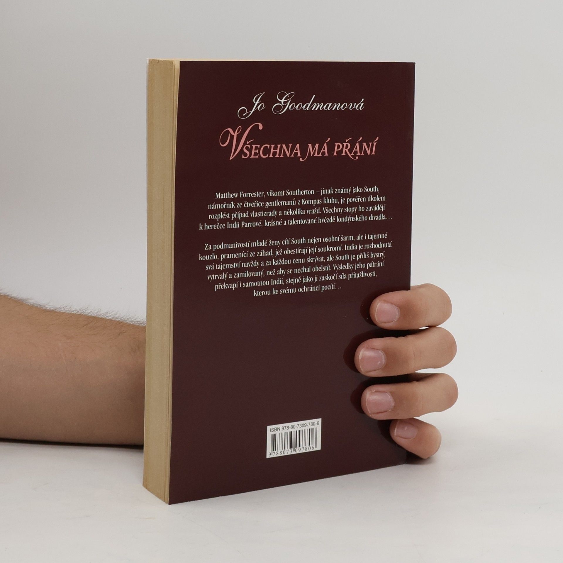Série Kompas klub - 2. díl Matthew Forrester, vikomt Southerton - jinak známý jako South, námořník ze čtveřice gentlemanů z Kompas klubu, je pověřen úkolem rozplést případ vlastizrady a několika vražd. Všechny stopy ho závadějí k herečce Indii Parrové, krásné a talentované hvězdě londýnského divadla... Za podmanivostí mladé ženy cítí South nejen osobní šarm, ale i tajemné kouzlo, pramenící ze záhad, jež obestírají její soukromí. India je rozhodnutá své tajemství navždy a za každou cenu skrývat...