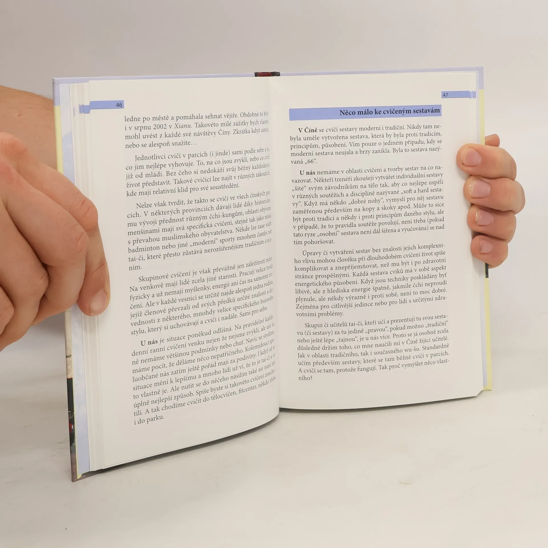 V době civilizačních chorob, stresů, nedostatku pohybu, extrémního fyzického i psychického zatížení a vyčerpání si už mnozí lidé začínají sami hledat aktivity, které by tato negativa, jež znepříjemňují život a snižují jeho kvalitu, omezily, případně zcela eliminovaly. Vzrůstá také povědomí o tradičních čínských cvičeních, především pak o tai-či. Autor trochu jinak, než je obvyklé popisuje své osobní názory a zkušenosti, získané z dosavadní patnáctileté praxe učitele tai-či a některých dalších stylů wu-šu, včetně čchi-kungu. Opírá se především o poznatky ze svých deseti studijních pobytů v Číně. Kniha je doplněna barevnými fotografiemi.