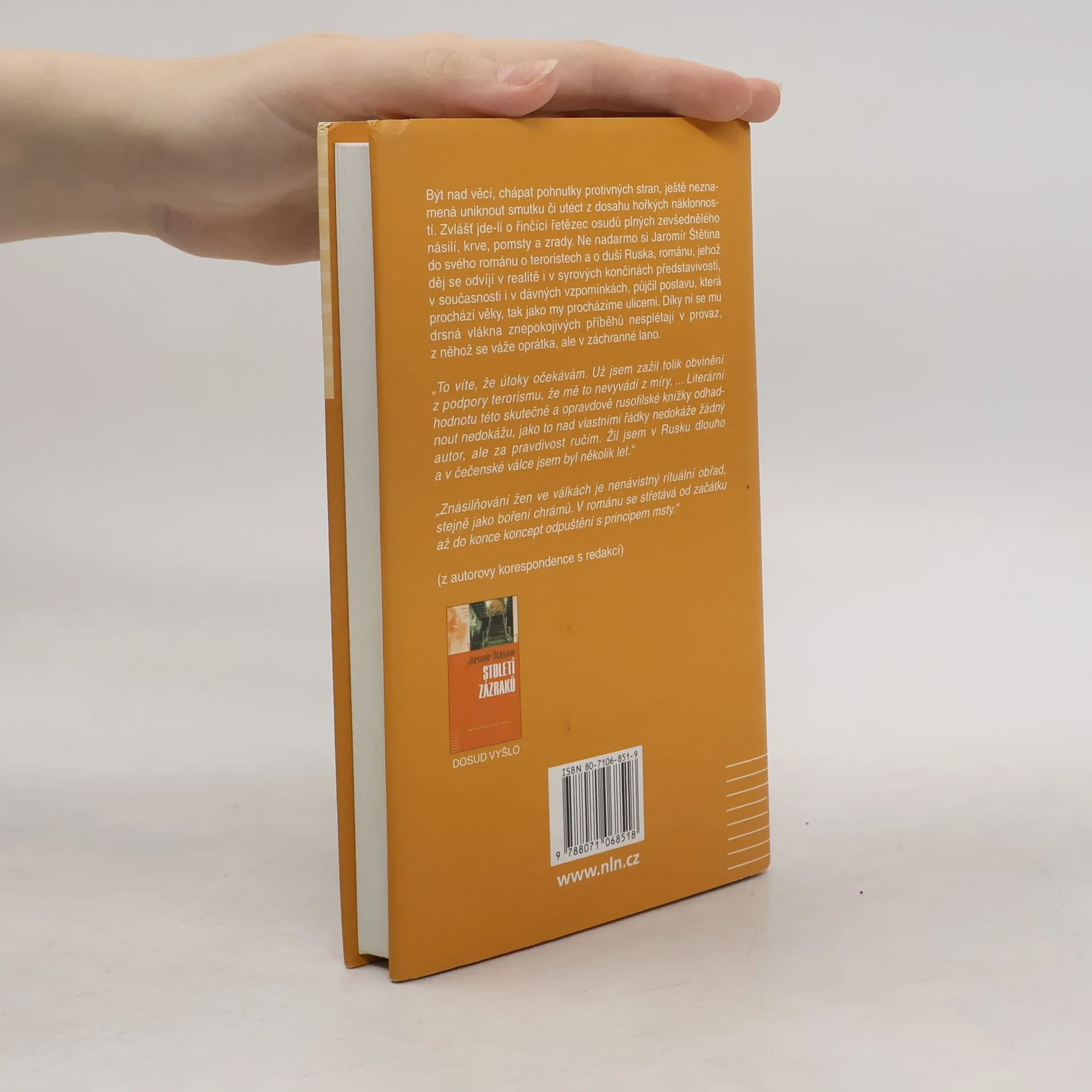 Román o terorismu a o duši Ruska od známého novináře a reportéra. Jeho děj se odvíjí v realitě i v syrových končinách představivosti, v současnosti i v dávných vzpomínkách. Autor si do něj půjčil postavu, která prochází věky, tak jako my procházíme ulicemi. Díky ní se mu drsná vlákna znepokojivých příběhů nesplétají v provaz, z něhož se váže oprátka, ale v záchranné lano.