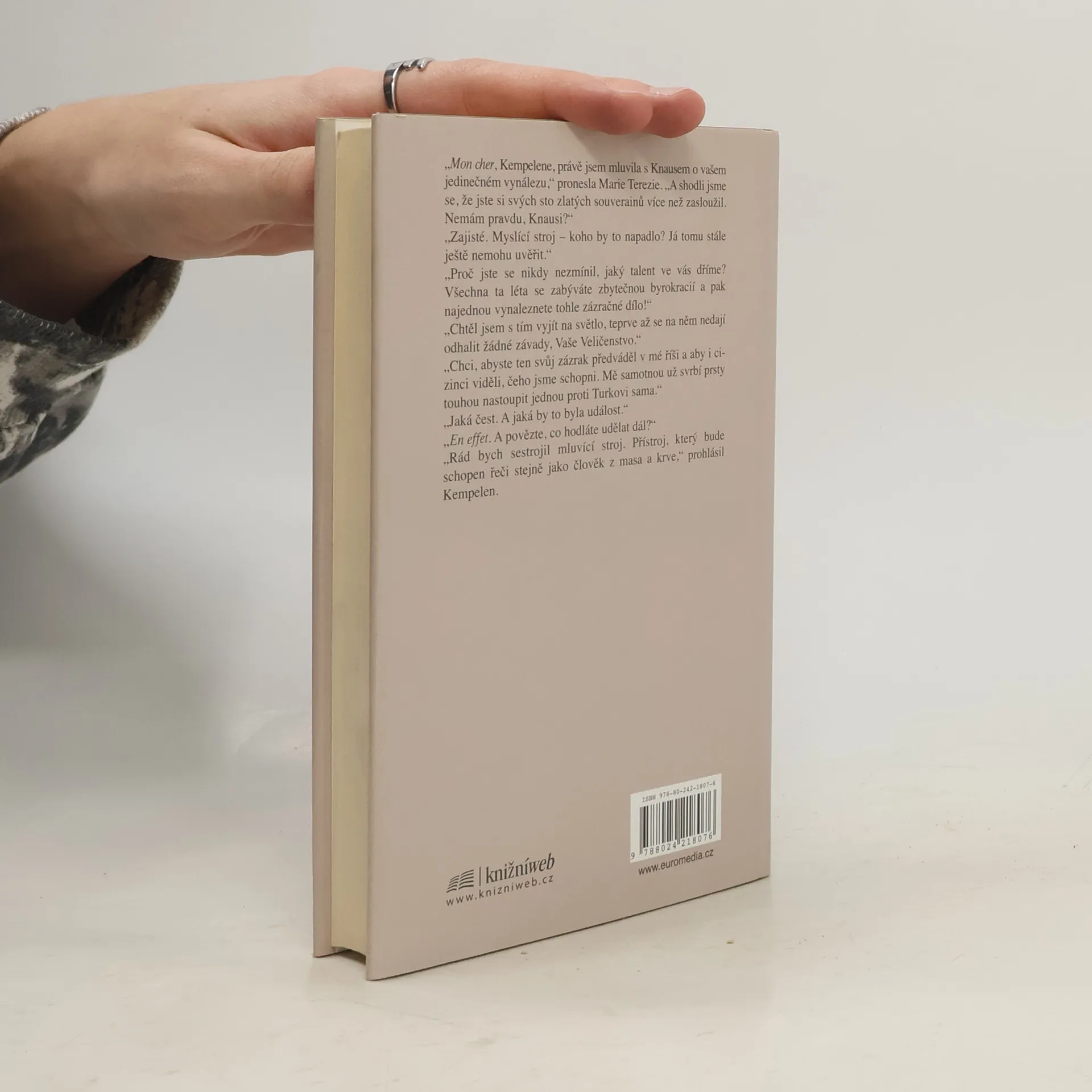 Největší podvod století na dvoře císařovny Marie Terezie. Dobrodružný román odehrávající se ke konci osmnáctého století na dvoře Marie Terezie. Hlavní hrdina Wolfgang von Kempelen se pokouší zaujmout dvůr svými vynálezy. Na dvoře Marie Terezie je však ještě jeden vynálezce, který se rozhodne proniknout do Kempelenových „čar a kouzel“. Kempelen je totiž odhodlán uvést na svět automat hrající šachy. K tomu potřebuje však „mozek“ celého stroje a tím je trpaslík Tibor. Záhy začne jít Tiborovi o život, to když se dvořané rozhodnou, že odhalí záhadu „šachového Turka“.