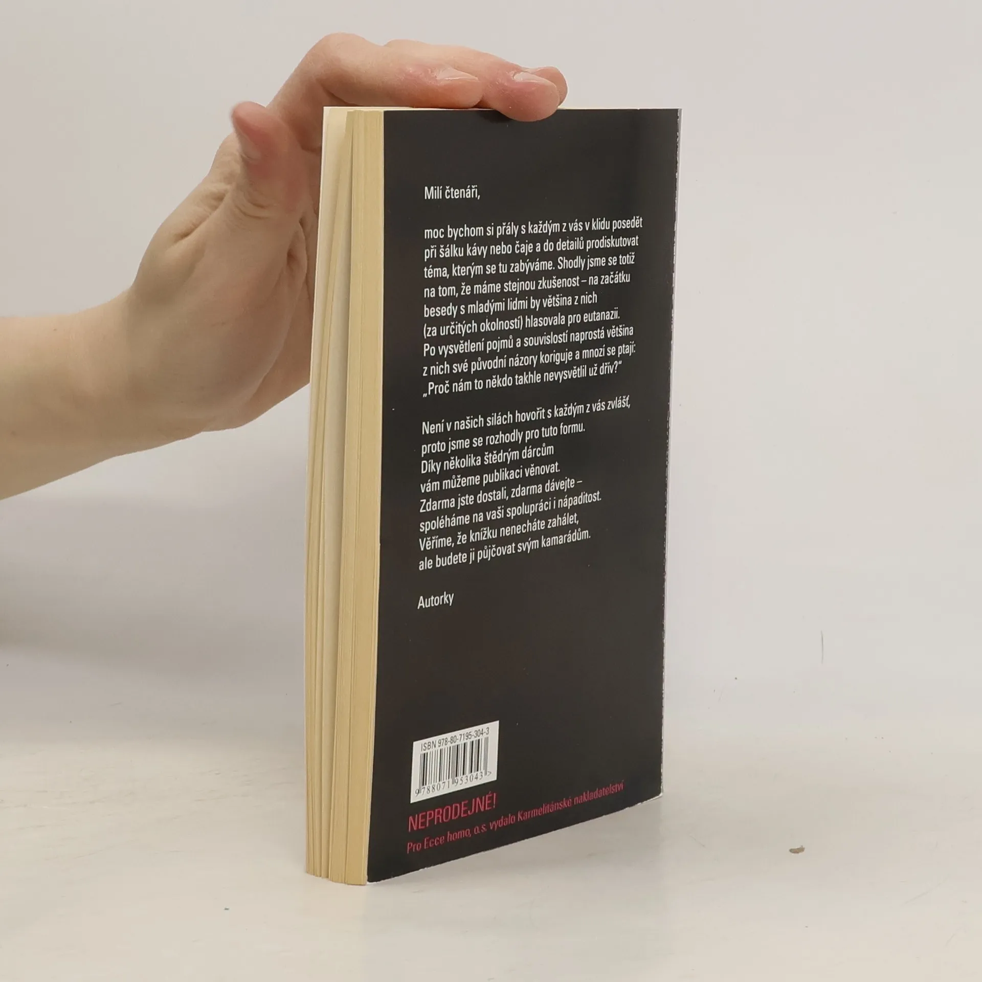 Kompletní text publikace určené pro střední školy poskytující základní orientaci v otázkách eutanazie a palitivní péče proložený mnoha příběhy ze života. Autorka se zamýšlí nad tématem dobré smrti, rozebírá vztah lékaře a pacienta. Drobný pohled do minulosti - nacistický program eutanázie. Paliativní a hospicová péče jako cesta k důstojnému umírání a dobré smrti. Jak může každý z nás pomoci?