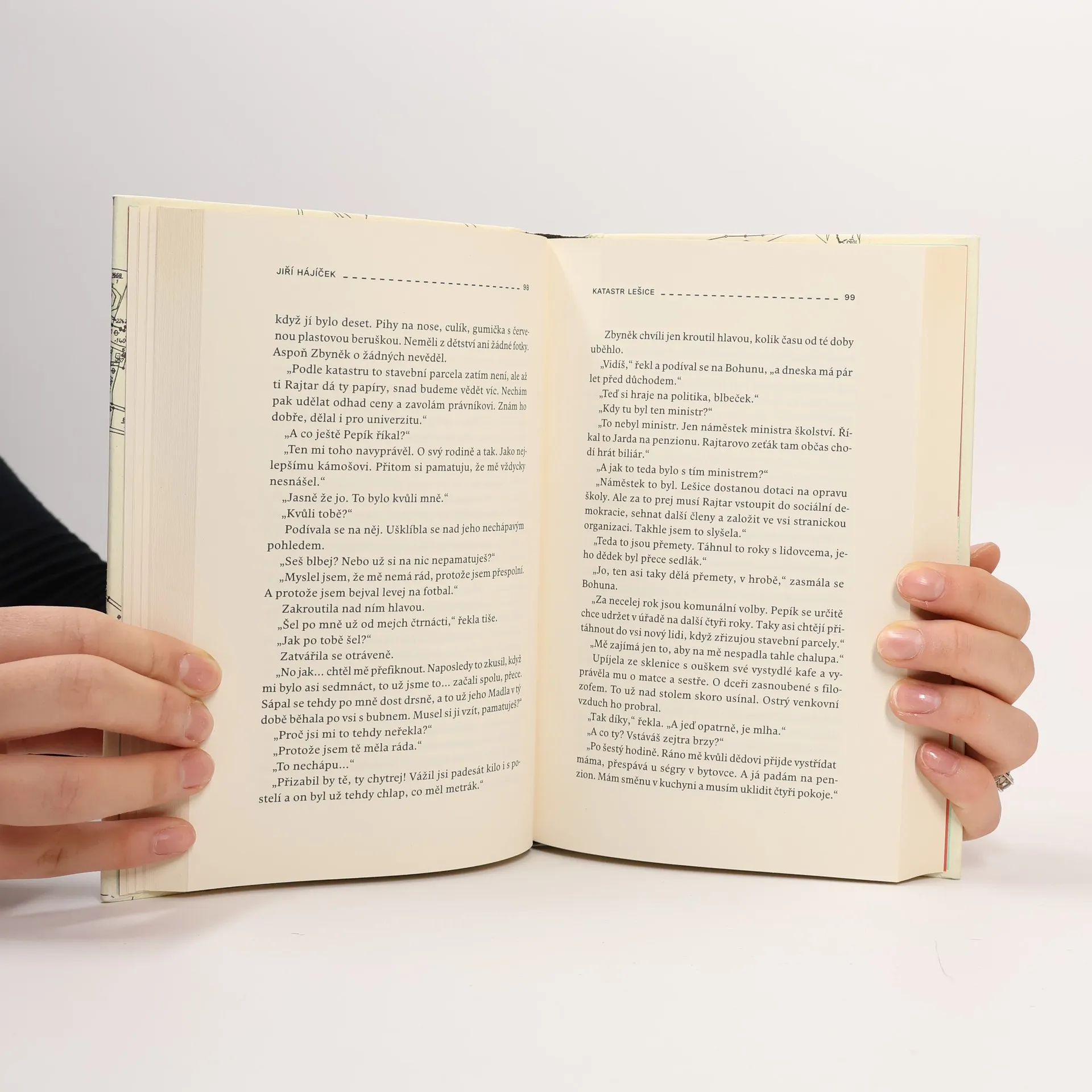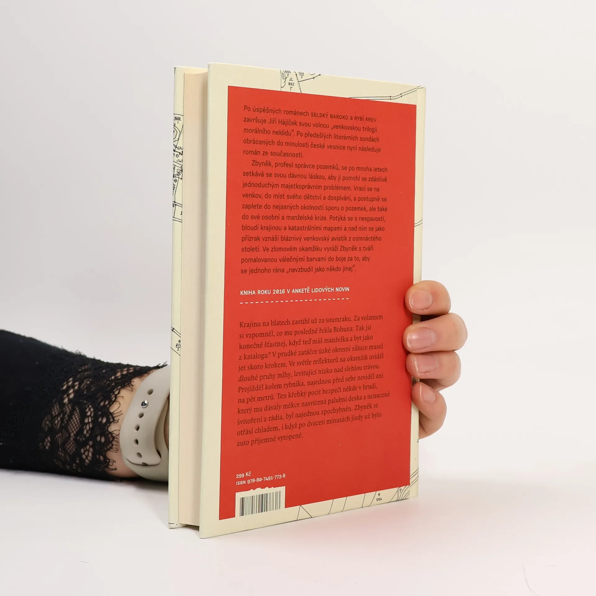 Po úspěšných románech Selský baroko a Rybí krev završuje Jiří Hájíček svou volnou „venkovskou trilogii morálního neklidu“. Předešlé literární sondy obrácené do minulosti české vesnice následuje nyní román ze současnosti. Opět silný příběh, v němž kromě lidí tentokrát hrají důležitou roli pozemky — zděděná pole a spory kolem jejich vlastnictví. Venkovská krajina jihočeských blat je vůbec v textu silně přítomna a kromě jedinečné atmosféry dodává příběhu i historický kontext a také nepřímo vstupuje do osudů hlavních postav. Zbyněk, profesí správce pozemků, se po mnoha letech setkává se svou dávnou láskou, aby jí pomohl se zdánlivě jednoduchým majetkoprávním problémem. Vrací se na venkov, na místa svého dětství a dospívání, a zamotává se do nejasných okolností pozemkového sporu, ale také do osobní a manželské krize. Potýká se s nespavostí, bloudí krajinou a katastrálními mapami a nad ním se jako přízrak vznáší bláznivý venkovský aviatik z osmnáctého století. Ve zlomovém okamžiku jde Zbyněk s tváří pomalovanou válečnými barvami do boje. Za to, co považuje za správné, za sny dětství a „aby se jednoho rána neprobudil jako někdo jiný“.