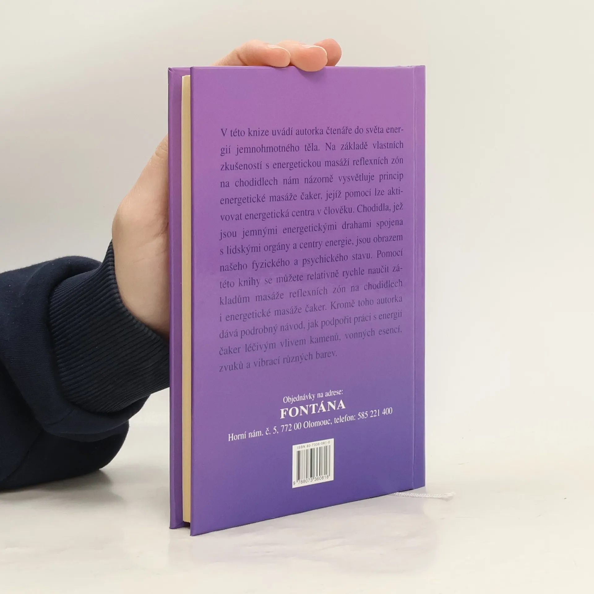 Autorka této knihy uvádí čtenáře do světa energií jemnohmotného těla. Na základě vlastních zkušeností s energetickou masáží reflexních zón na chodidlech názorně vysvětluje princip energetické masáže čaker, jejíž pomocí lze aktivovat silová centra v lidském organizmu. Chodidla, jež jsou jemnými energetickými drahami spojena s lidskými orgány, jsou obrazem našeho fyzického i psychického stavu. Pomocí této knihy se můžete velmi brzy naučit základům masáže reflexních zón i manipulaci s jemnohmotnými centry energie prostřednictvím chodidel. Kromě toho zde naleznete i návody, jak podpořit práci s čakrami využitím léčivého působení kamenů, vonných esencí, zvuků a barev.