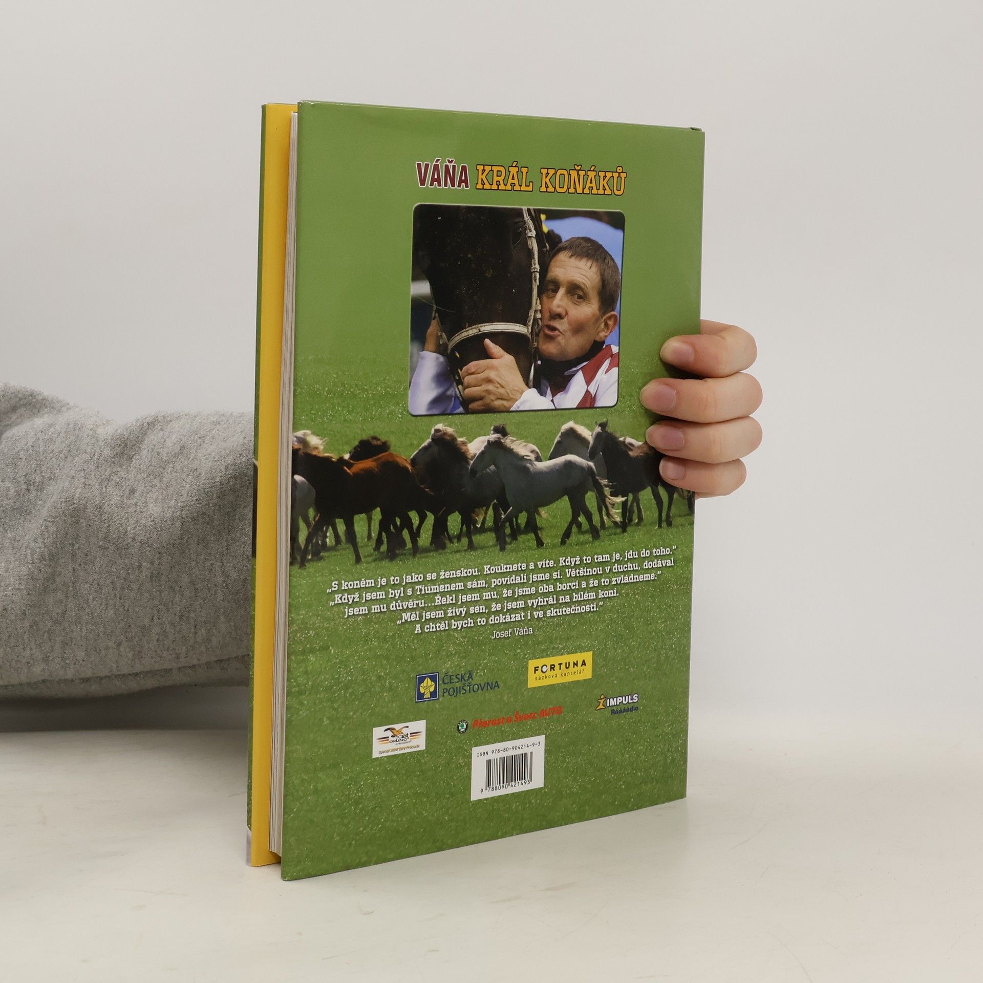 „Tenhle život je o tvrdé dřině a o srdíčku. Koně jsou můj život, pracovat budu dál. Já bych bez toho nevydržel.“ Josef Váňa Poznáme, že Josef Váňa je sportovcem z jiné planety a rovněž člověk nezaměnitelným. Málokdo ovšem ví, že je současně nejstarším profesionálním žokejem světa, legendou, jíž právem srovnávají s žokejskými démony, ať už s rovinovým přeborníkem Lesterem Pigottem, který proslulé Derby vyhrál v šedesáti, či Richardem Dunwoodym, dvojnásobným vítězem Velké liverpoolské národní. Čím však Jovan, jak mu už říkali jako ogarovi v rodné valašské vísce Slopné, zasáhl srdce fanoušků dostihového sportu a obyčejných lidí? Příběhem, který by dokázal vymyslet snad jen Dick Francis. Josef Váňa, který v kariéře několikrát přežil svou smrt, se totiž vždycky dokázal vrátit na piedestal nejvyšší. Nejdříve čtyřikrát zvítězil ve Velké pardubické se Železníkem, pak málem zesnul v Německu, po dalším pardubickém triumfu s Vronskym v roce 1997 ho však už pro roli žokeje pomalu odepisovali. Nezničitelný Jovan přestal pít, nastolil tvrdou životosprávu a po dvanácti letech se nejenom vrátil na trůn, ale s úžasnou ženou Pavlou rozvinul koňské impérium a se svými koníčky ovládl českou dostihovou scénu. A poslední Velkou pardubickou po tvrdém souboji s osudem vyhrál s Tiumenem sám. Ponořme se do fascinujícího příběhu malého velkého muže s koňským srdcem…