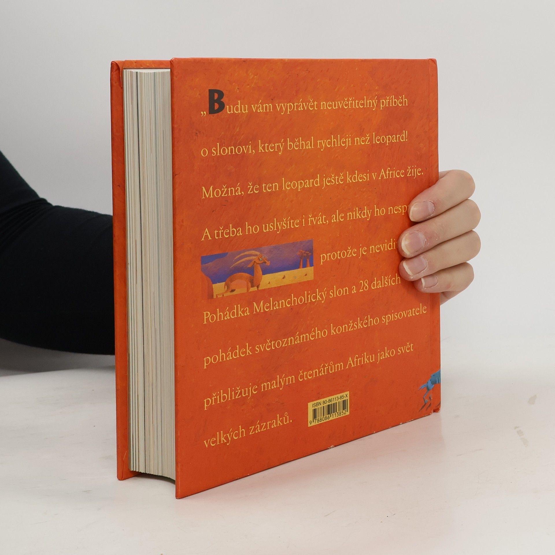 Budu vám vyprávět neuvěřitelný příběh o slonovi, který běhal rychleji než leopard! Možná, že ten leopard ještě kdesi v Africe žije. A možná ho uslyšíte i řvát, ale nikdy ho nespatříte, protože je neviditelný…“ Pohádka Melancholický slon a 29 dalších pohádek světoznámého konžského spisovatele přibližuje malým čtenářům Afriku jako svět velkých zázraků.... celý text