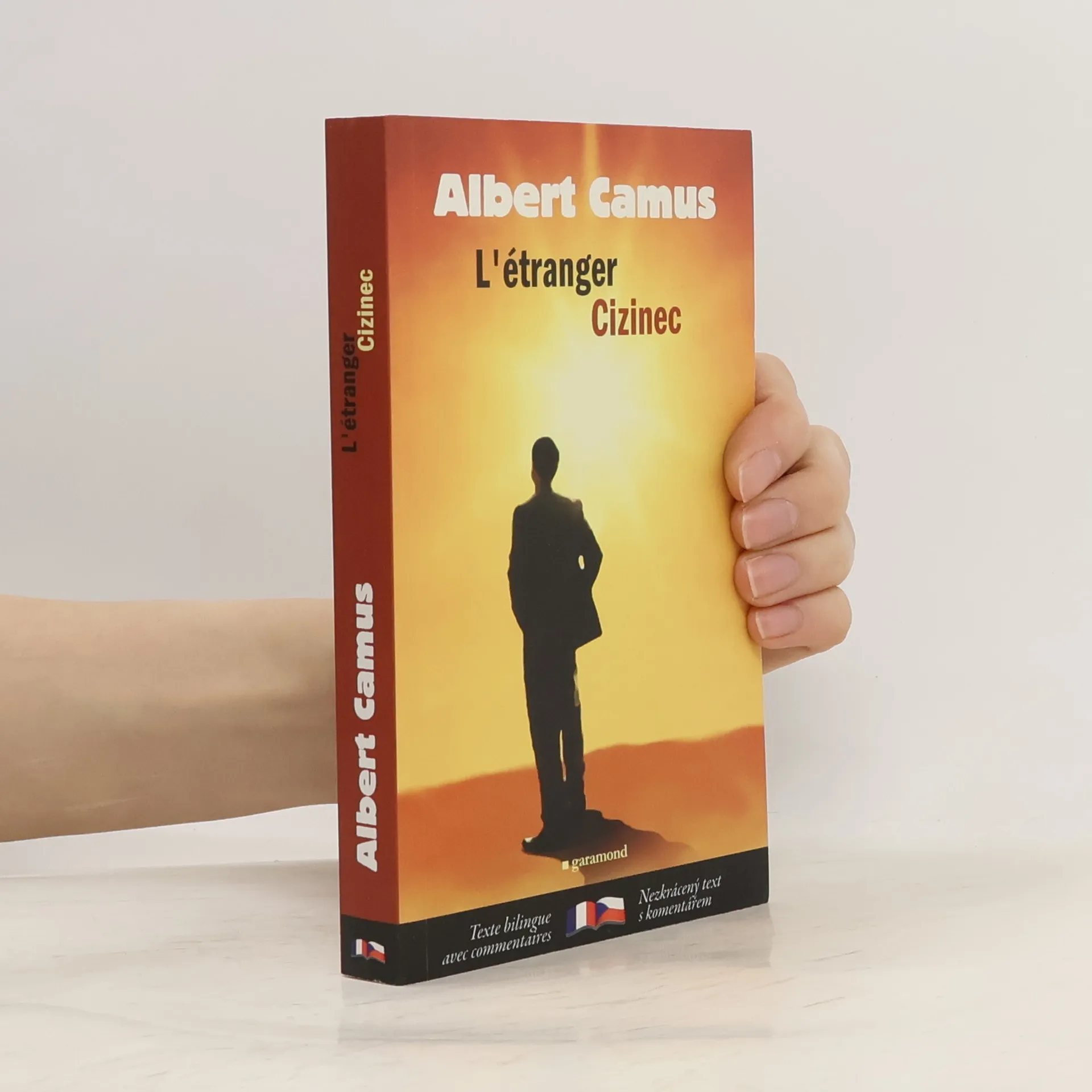 Dvojjazyčné komentované vydání jednoho z nejproslulejších děl 20. století. Protagonista Meursault, náhodný vrah, je odsouzen k smrti, protože nechce přijmout roli ve společenských hrách (neplakal například na matčině pohřbu). „Cizinec“ bez jediného náznaku hrdinského chování souhlasí s tím, že zemře pro pravdu, aniž by ji těm druhým vnucoval. Skutečnost kolem sebe přijímá, ale nehodnotí, odmítá ji vykoupit jakoukoli transcendencí. Je ve světě cizincem, neúčastným divákem. Albert Camus (1913–1960), francouzský spisovatel a filozof názorově spjatý s existencialismem, nositel Nobelovy ceny (1957), se vydáním Cizince stal duchovním otcem celé jedné poválečné generace.